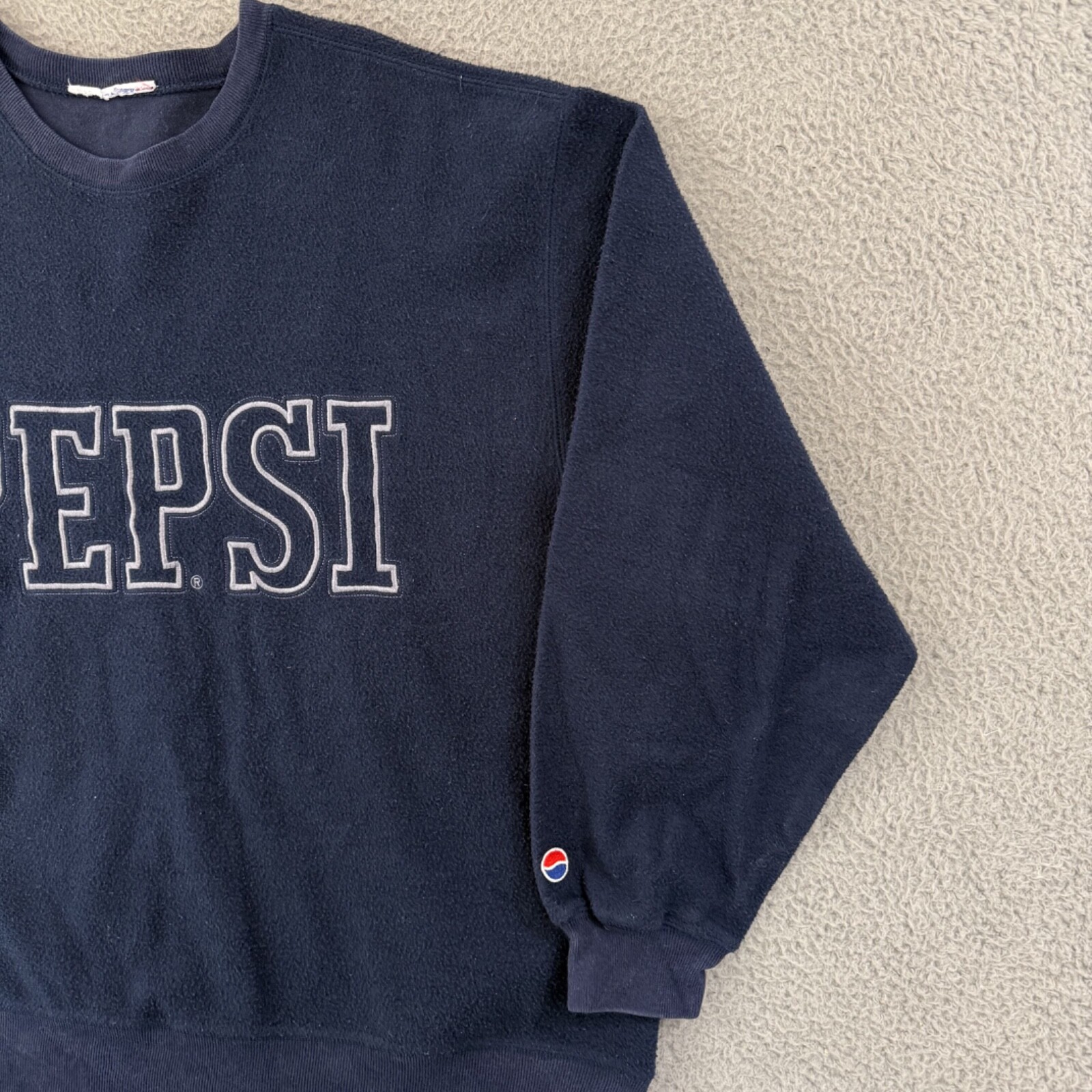 Vintage Pepsi Cola Sweatshirt Adult XL Blue Soda Embroidered Fleece 90s Pullover