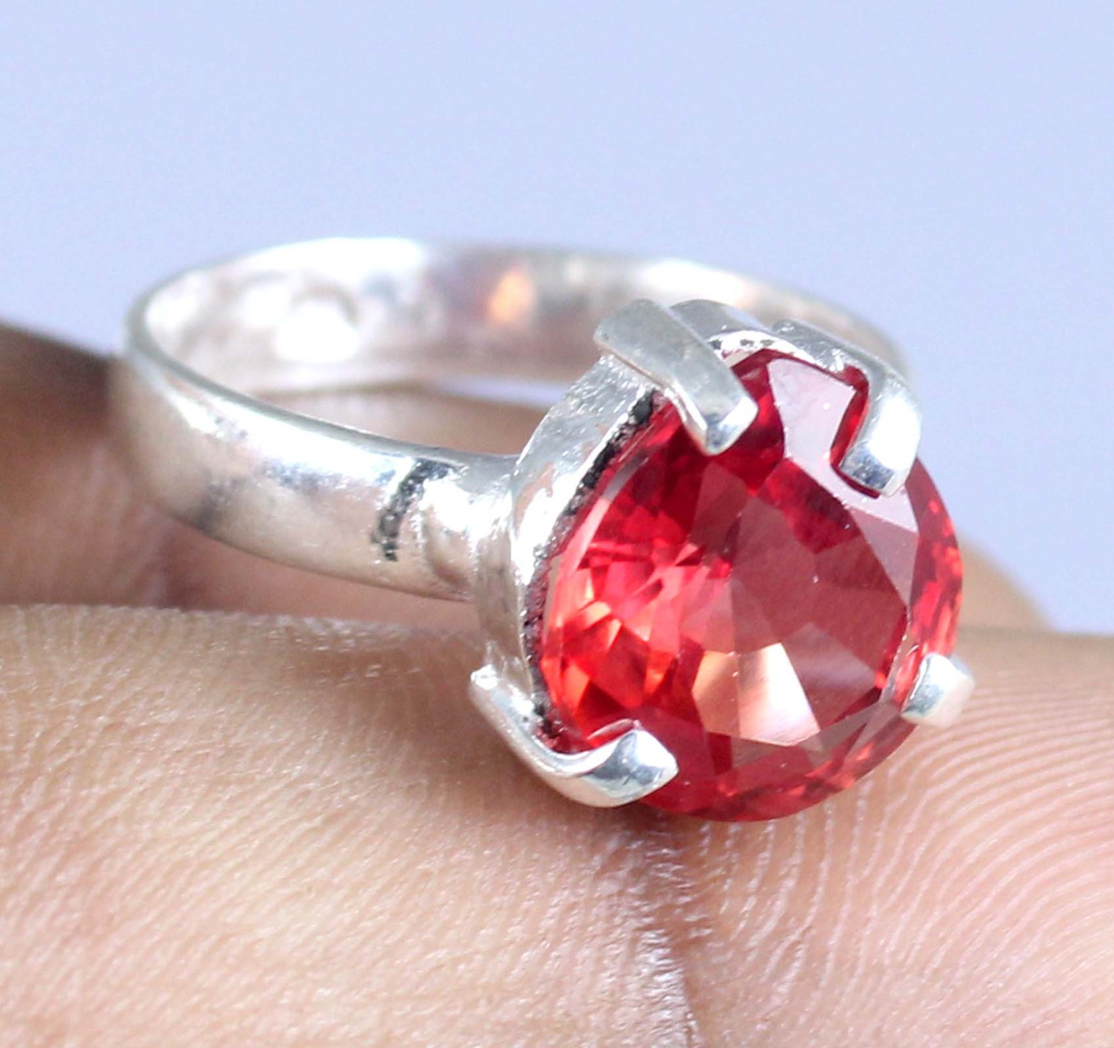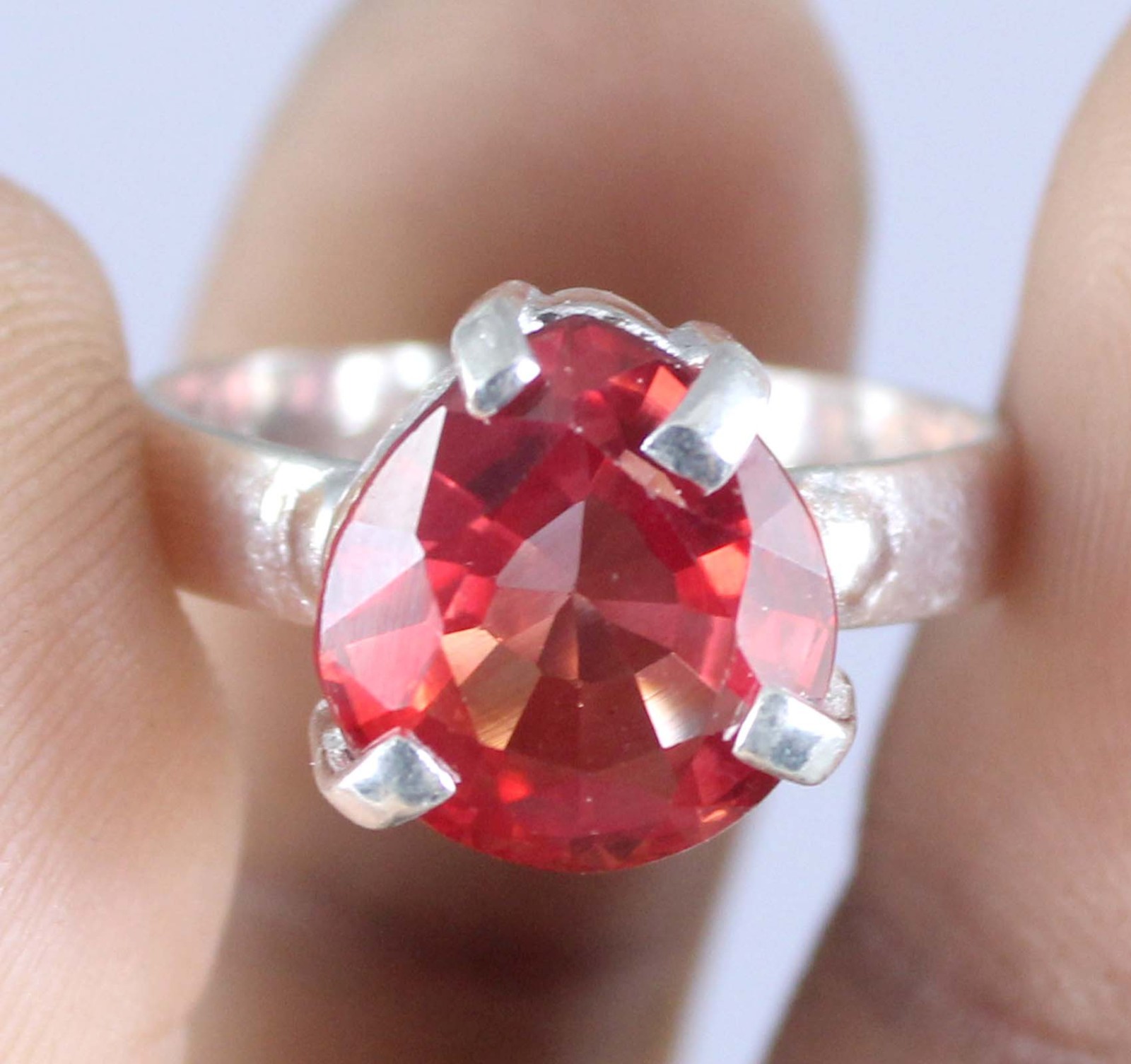 как выглядит Natural Padparadscha Orange Sapphire 9 Ct Pear Gemstone Ring Valentine Day Gift фото