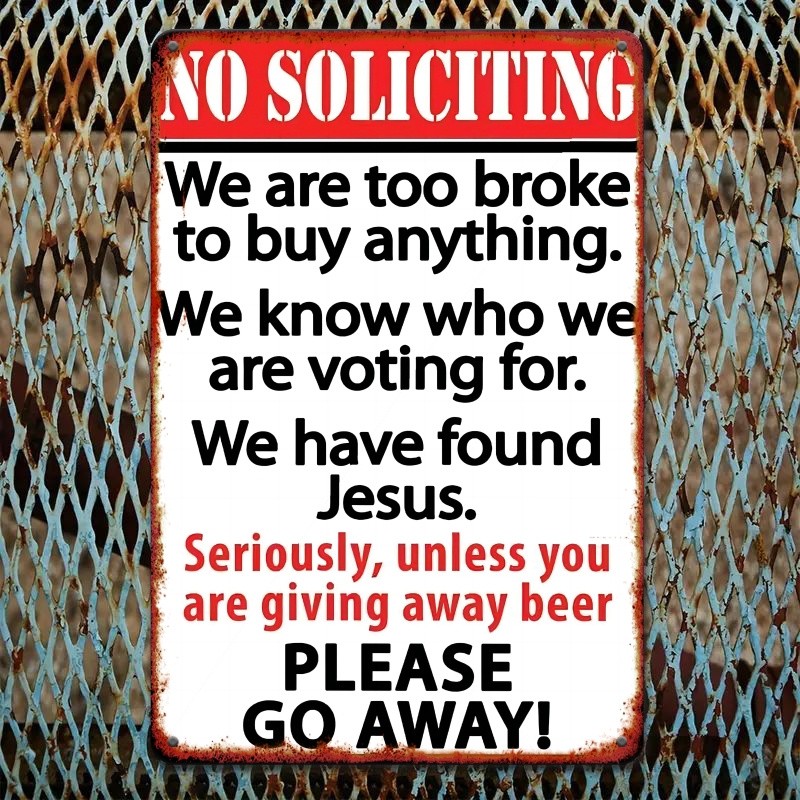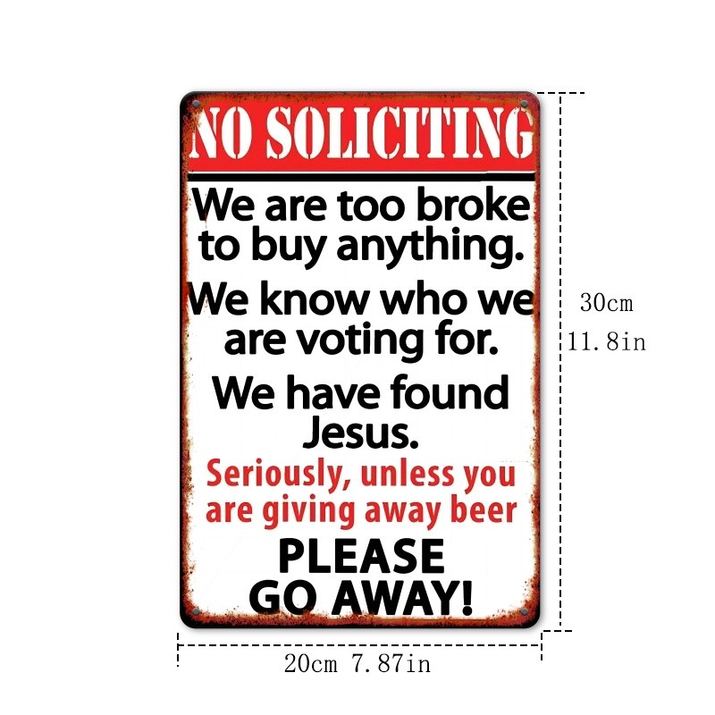 No Soliciting Humorous Metal Sign - 8x12 Inches, Metal Wall Art Decor