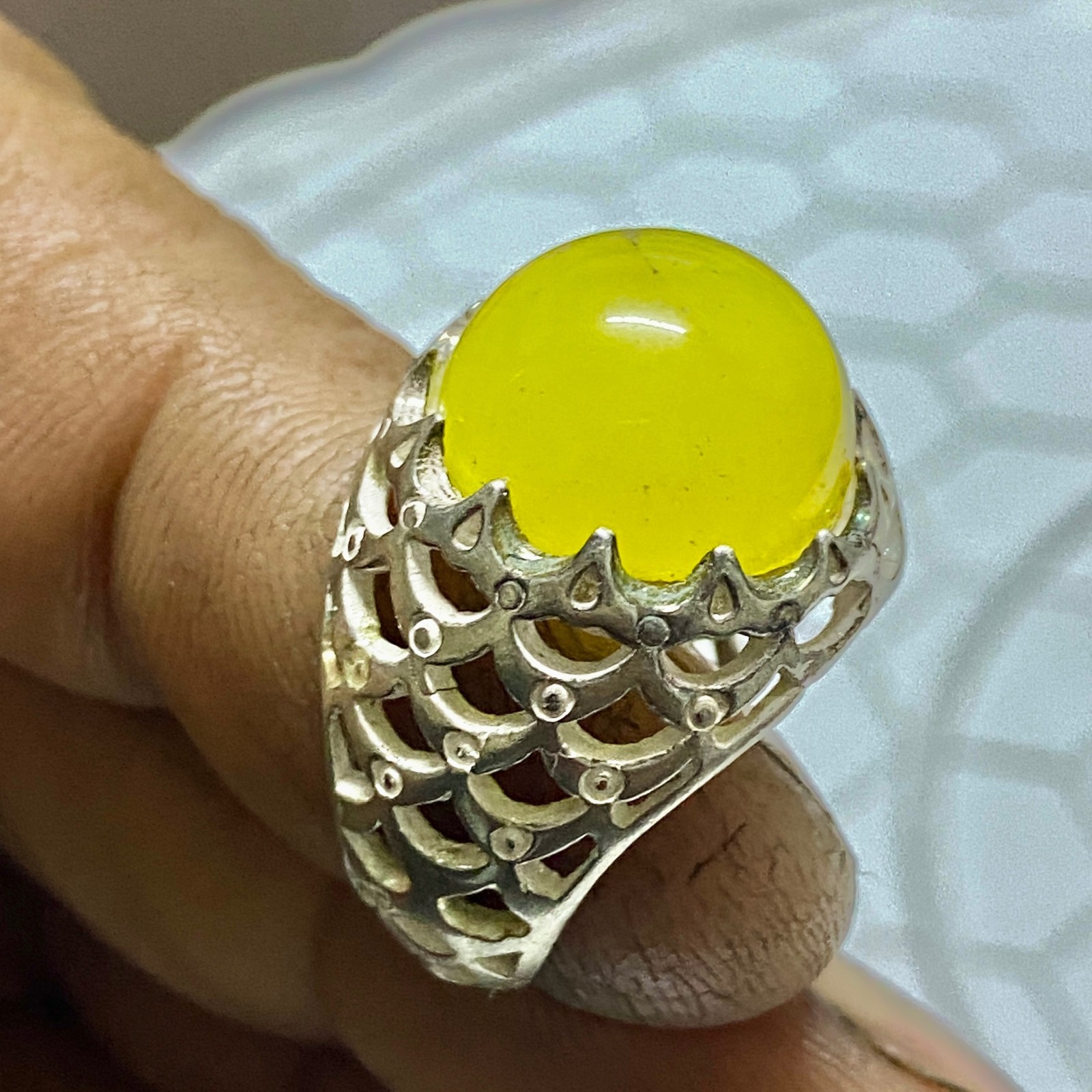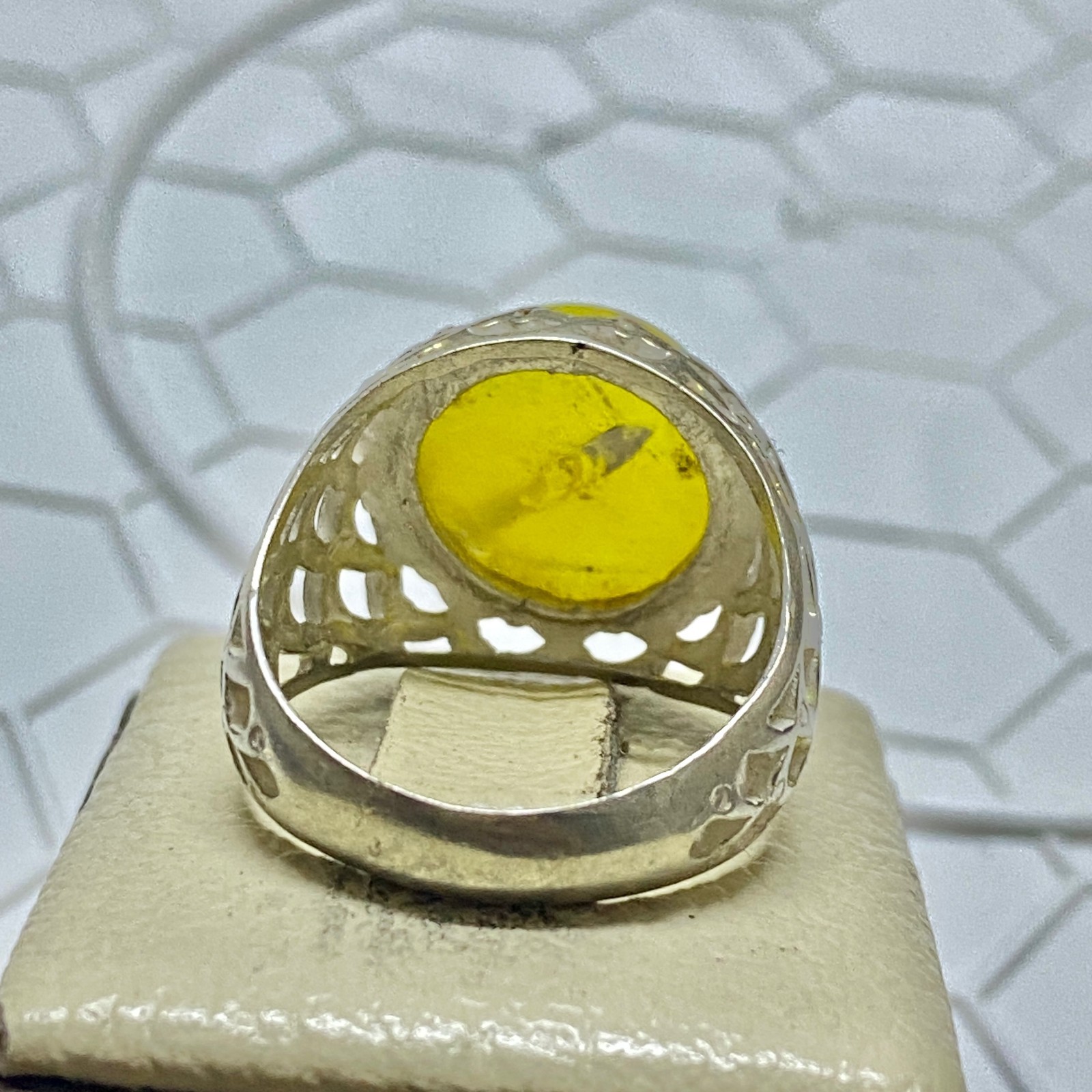 silver ring 925 sterling silver men ring yemeni yeloow agate aqeeq
