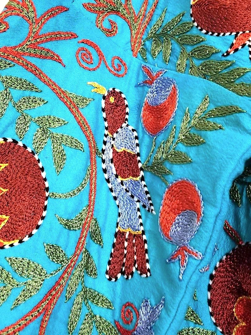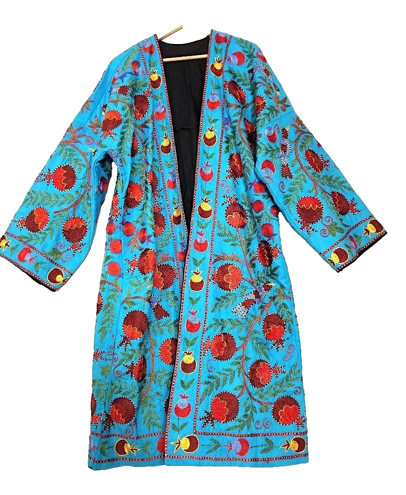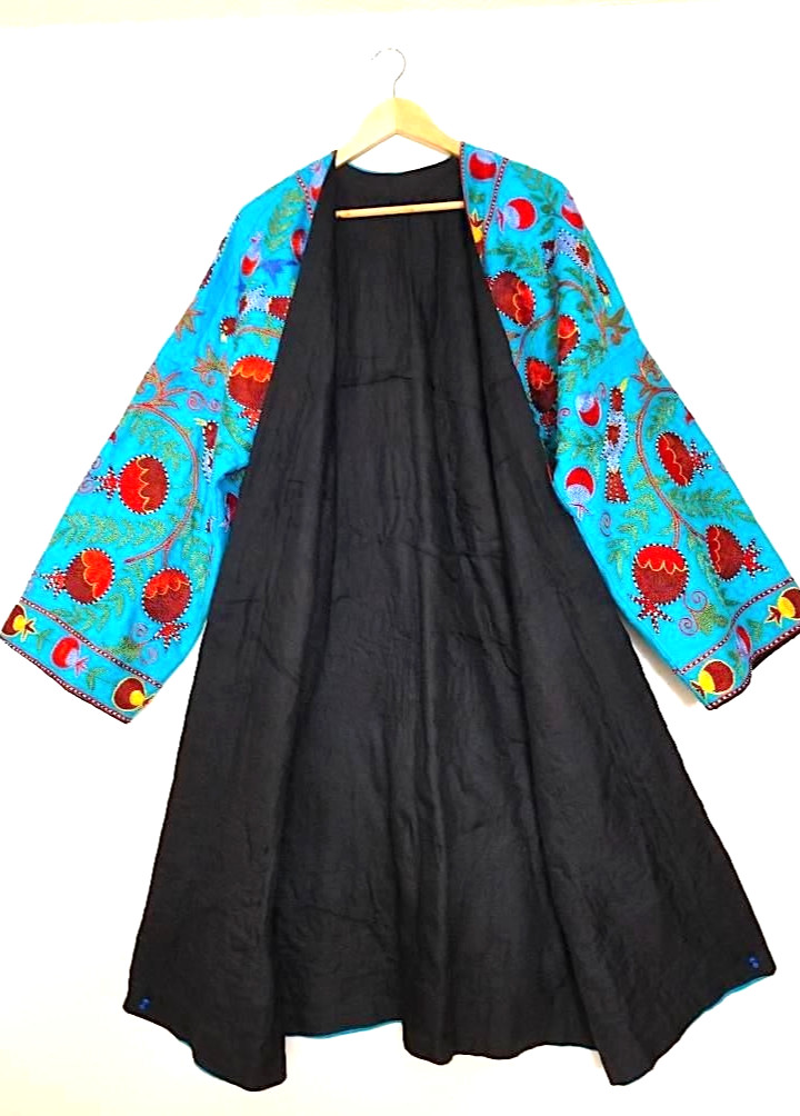 MAGNIFICENT CENTRAL ASIAN HAND MADE SUZANI SILK EMBROIDERY CHAPPAN ROBE