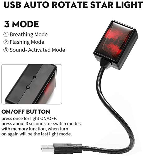 Car USB Red Star Projector Night Light Interior LED Red Voice-Activaed