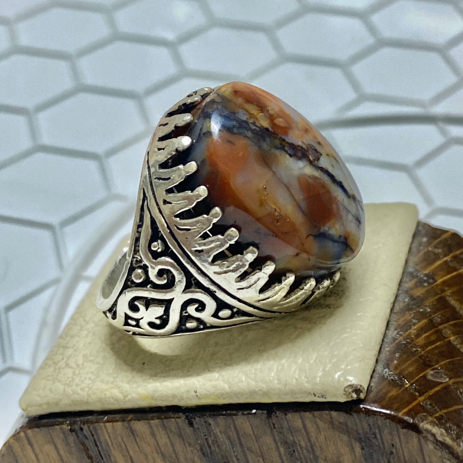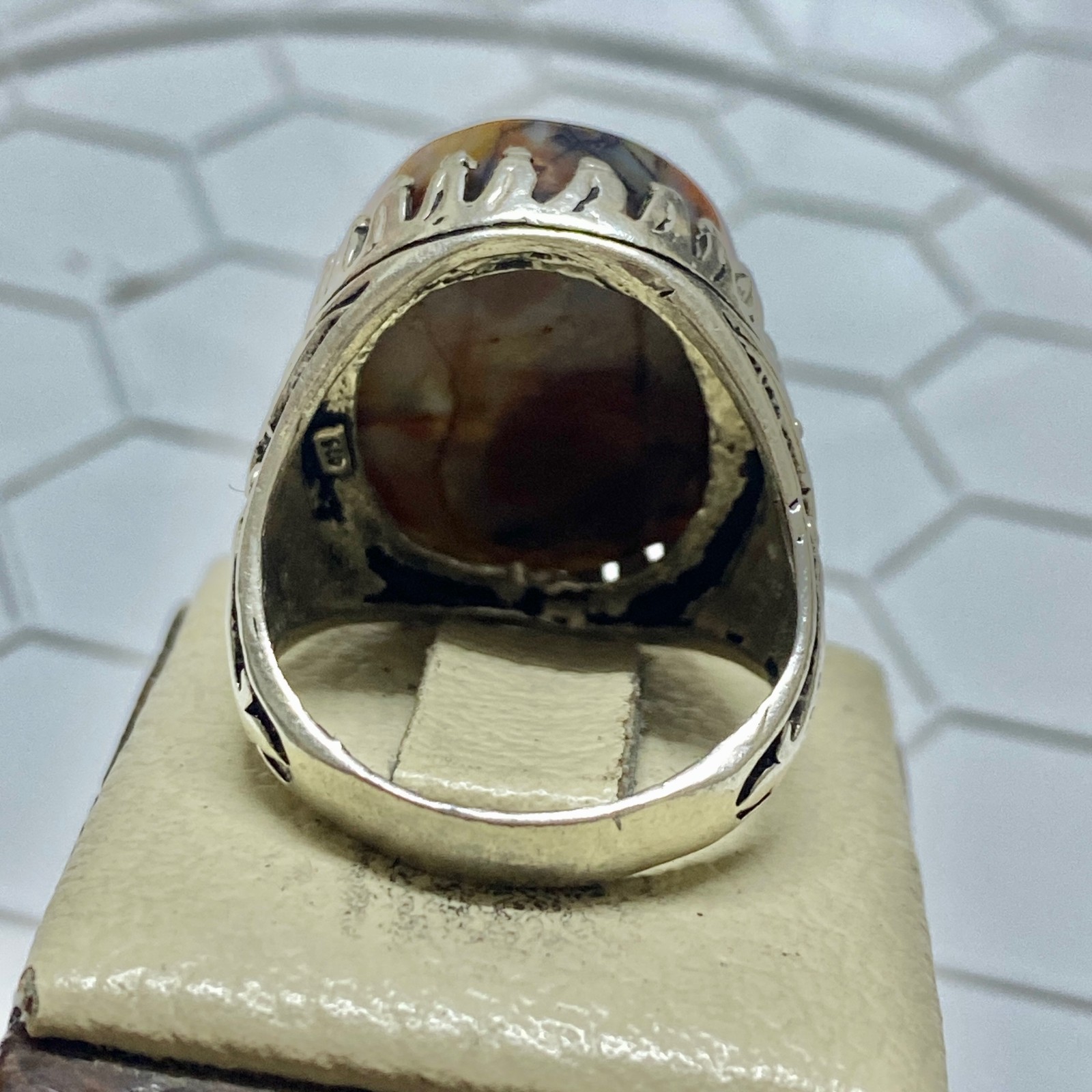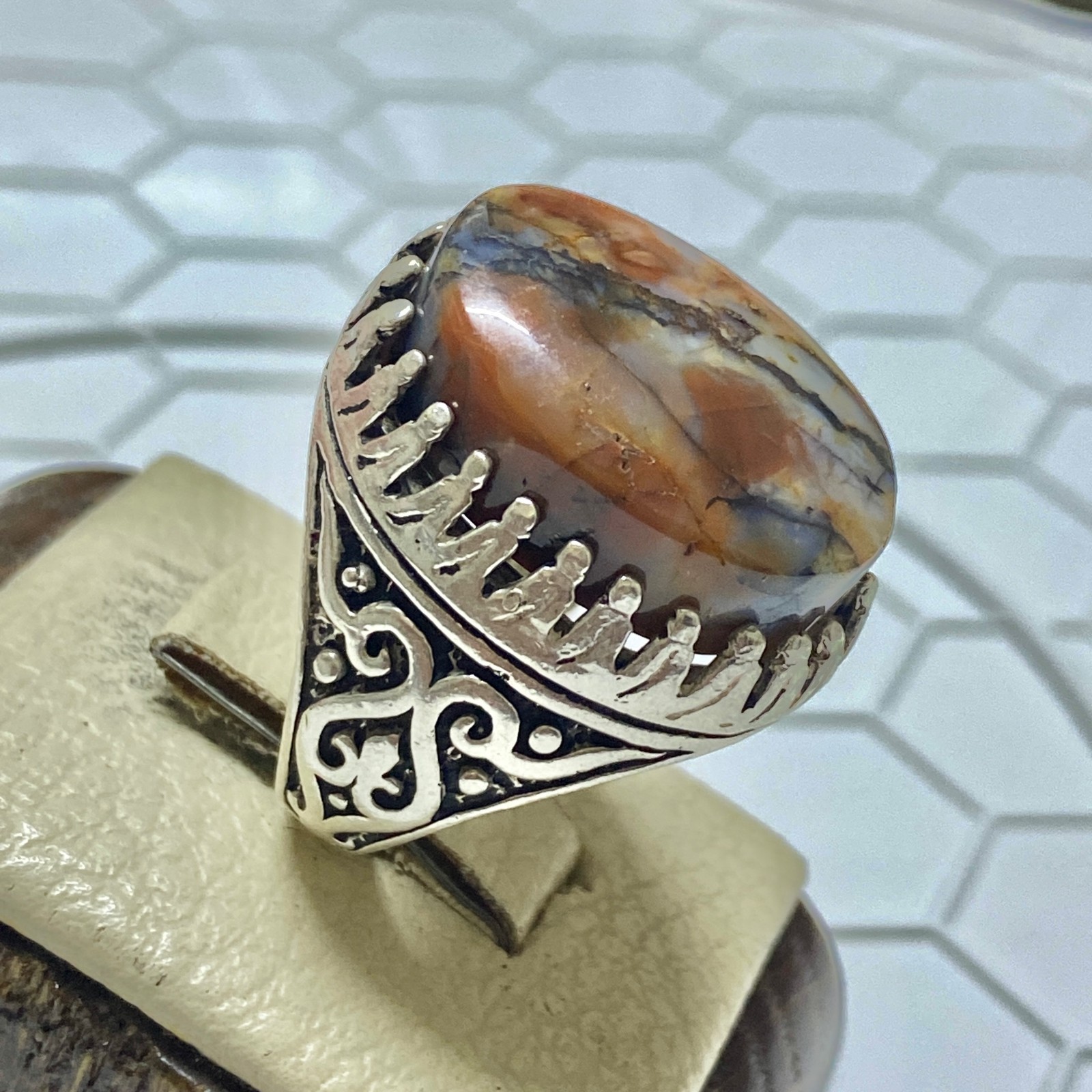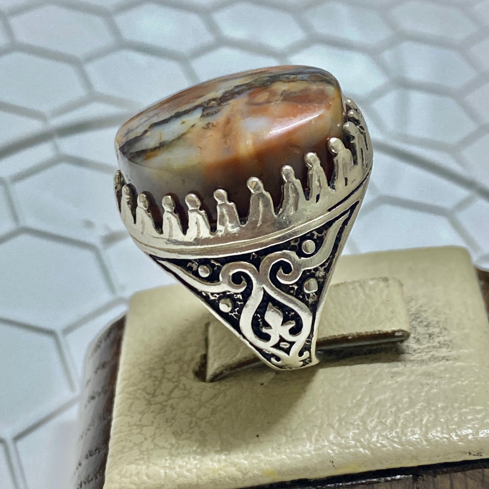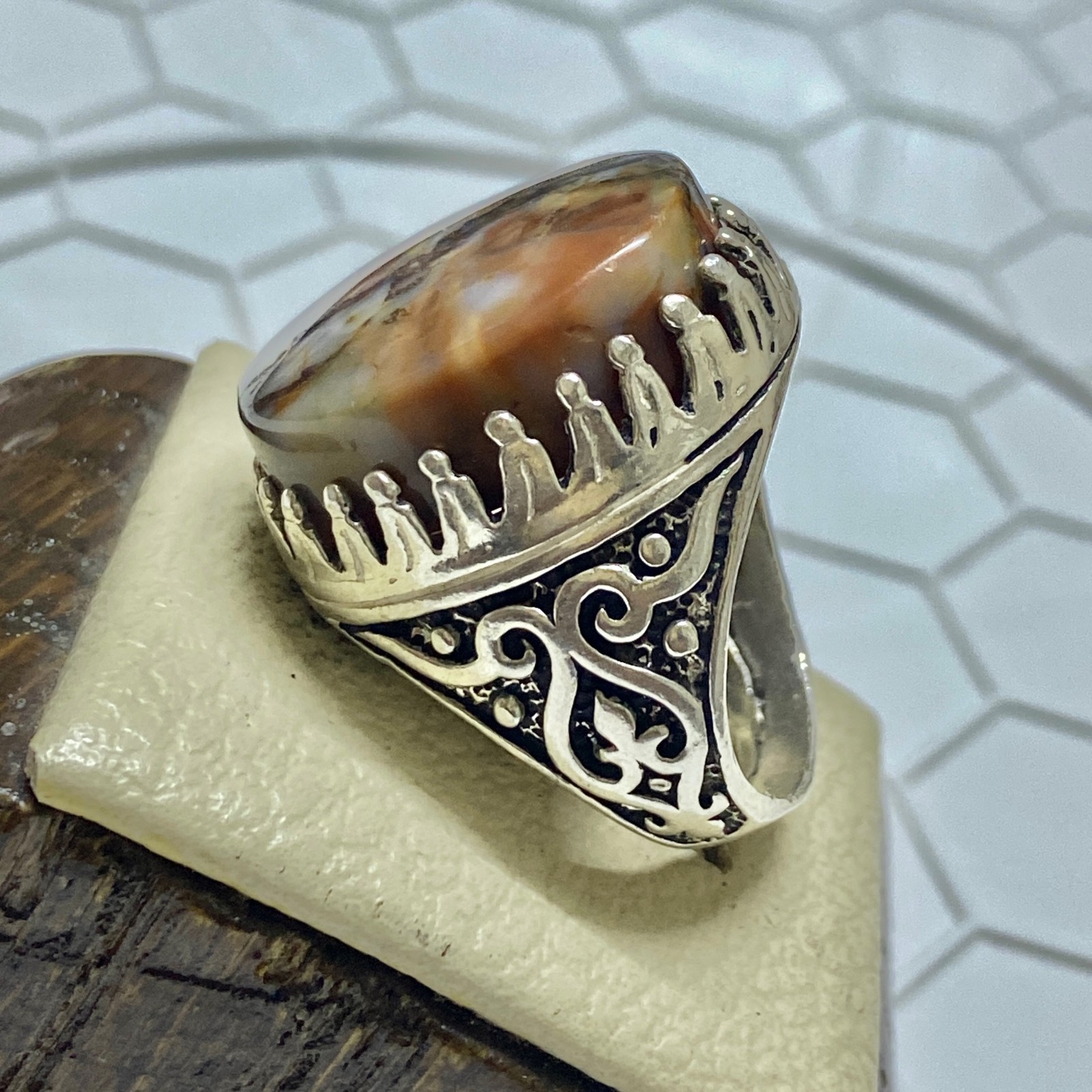 как выглядит Natural Yemeni Aqeeq Stone Mens Sterling Silver Ring Islamic Style фото