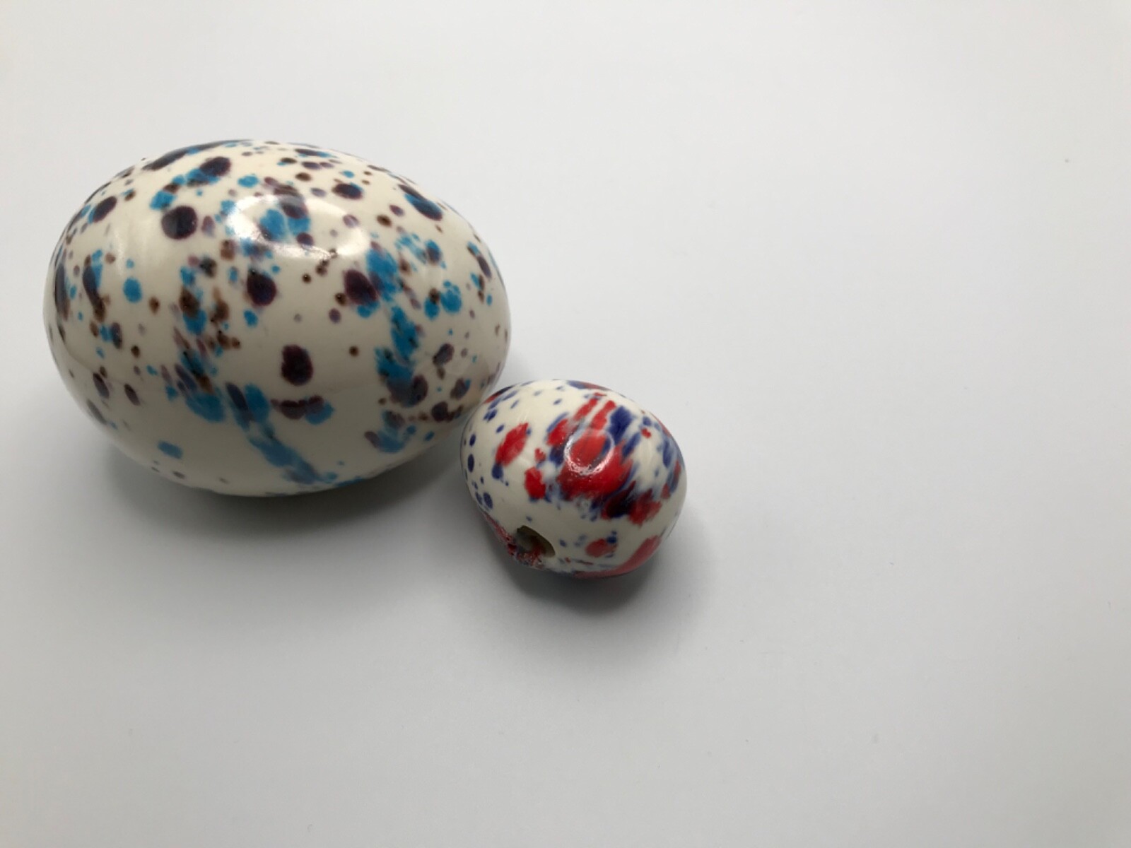 • Vintage Hand Crafted Speckled Ceramic Eggs Set of Two
