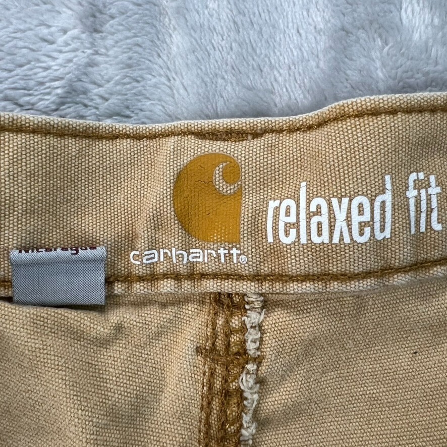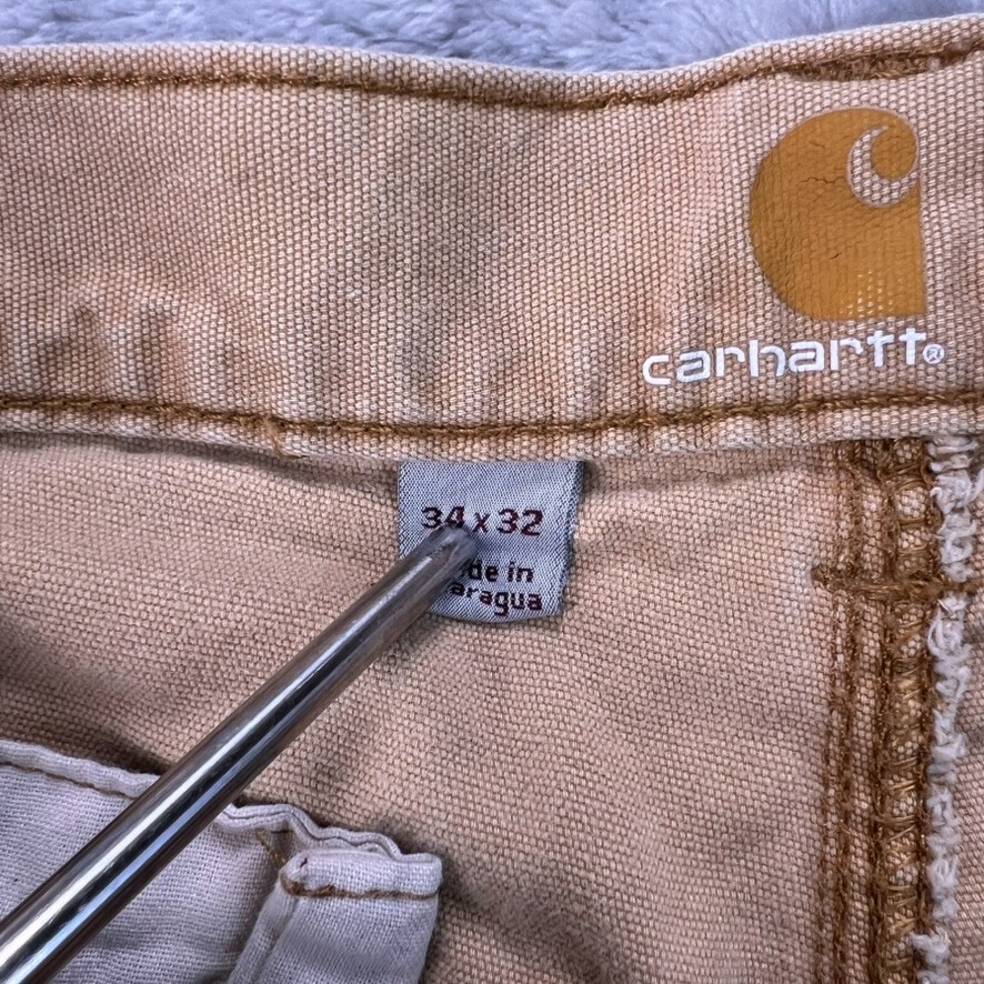 как выглядит Carhartt Double Knee Work Pants Mens 34x32 Fits 35X30 Beige Stained Distressed фото