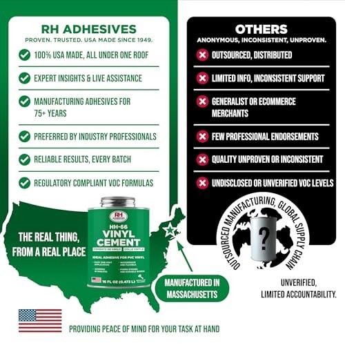 RH HH-66 PVC Vinyl Cement with Brush, Clear Waterproof Adhesive Glue,16 Oz..US