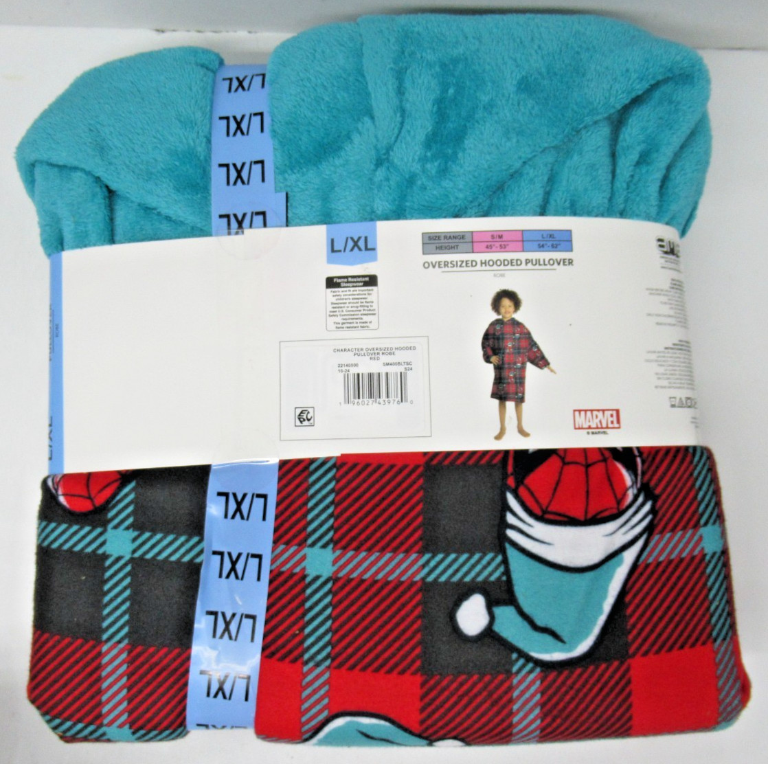 как выглядит Spiderman Kids Oversized Hooded Pullover Robe Size L/XL фото