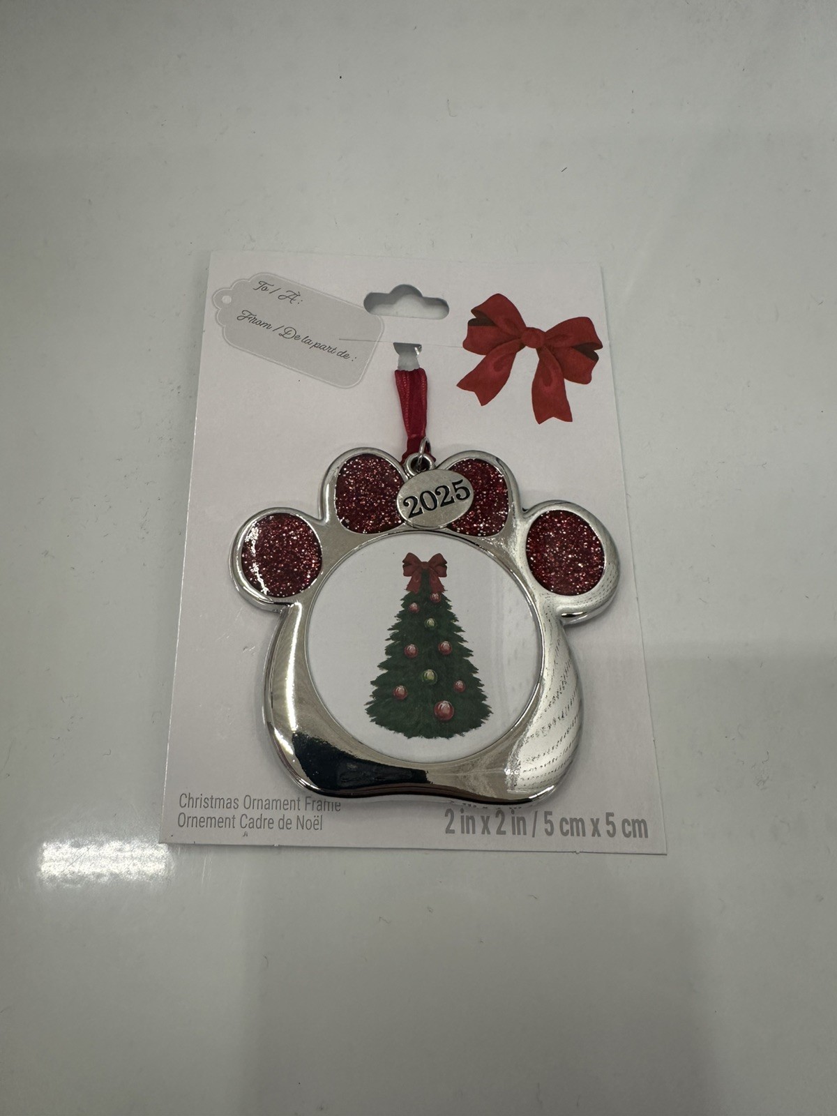 2025 CHRISTMAS TREE ORNAMENT PHOTO PICTURE FRAME PET PAW DOG OR CAT