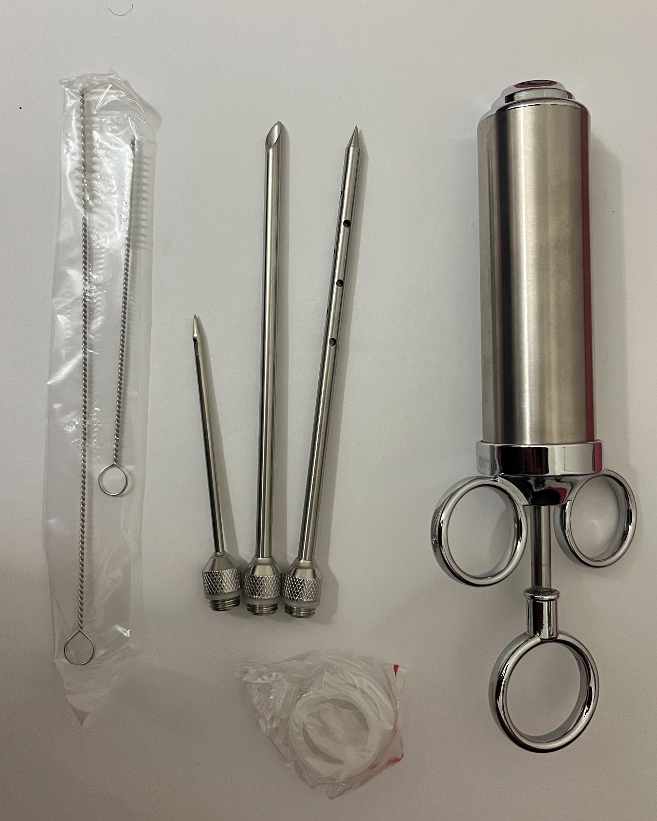 как выглядит Stainless Steel Marinade Meat Injector Syringe With Mutiple Needles Silver фото