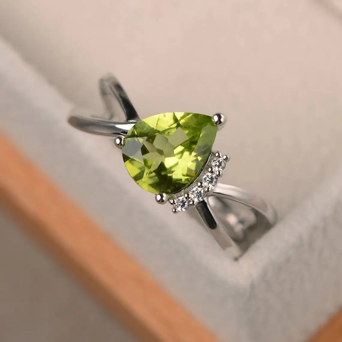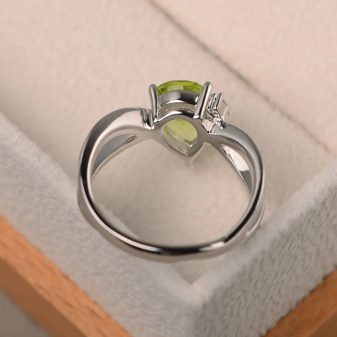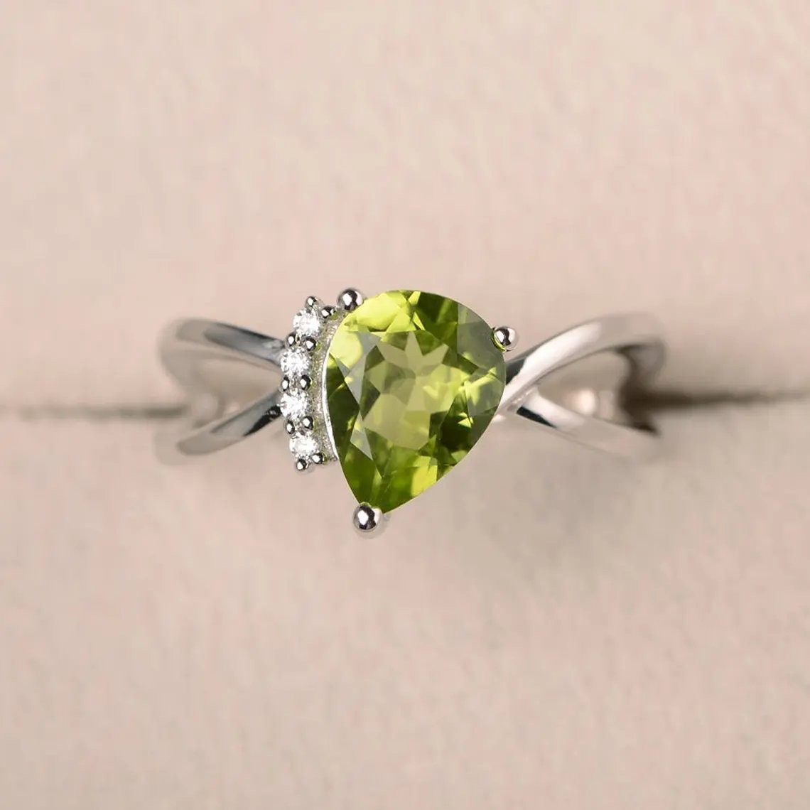 2CT Peridot Pear Gemstone 925 Silver Plated Minimal Ring Duty Free