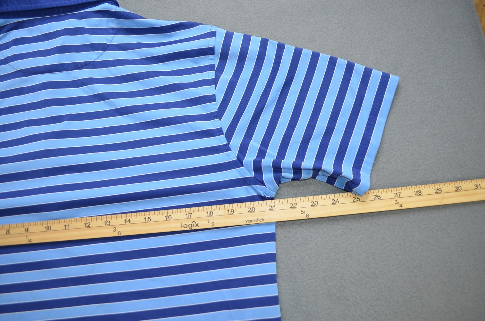 как выглядит Donald Ross Polo Shirt Short Sleeve Golf Performance Blue Striped Men