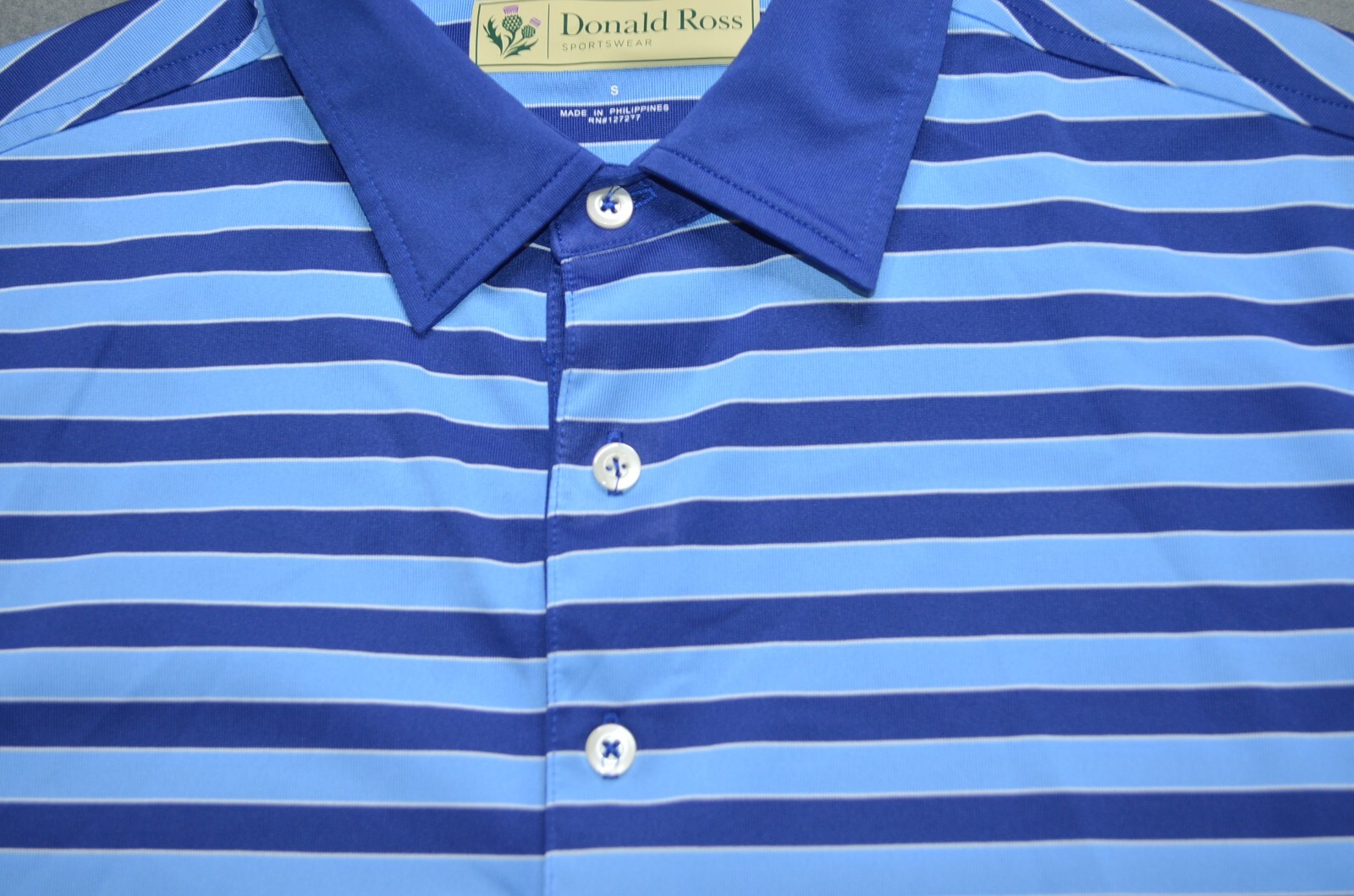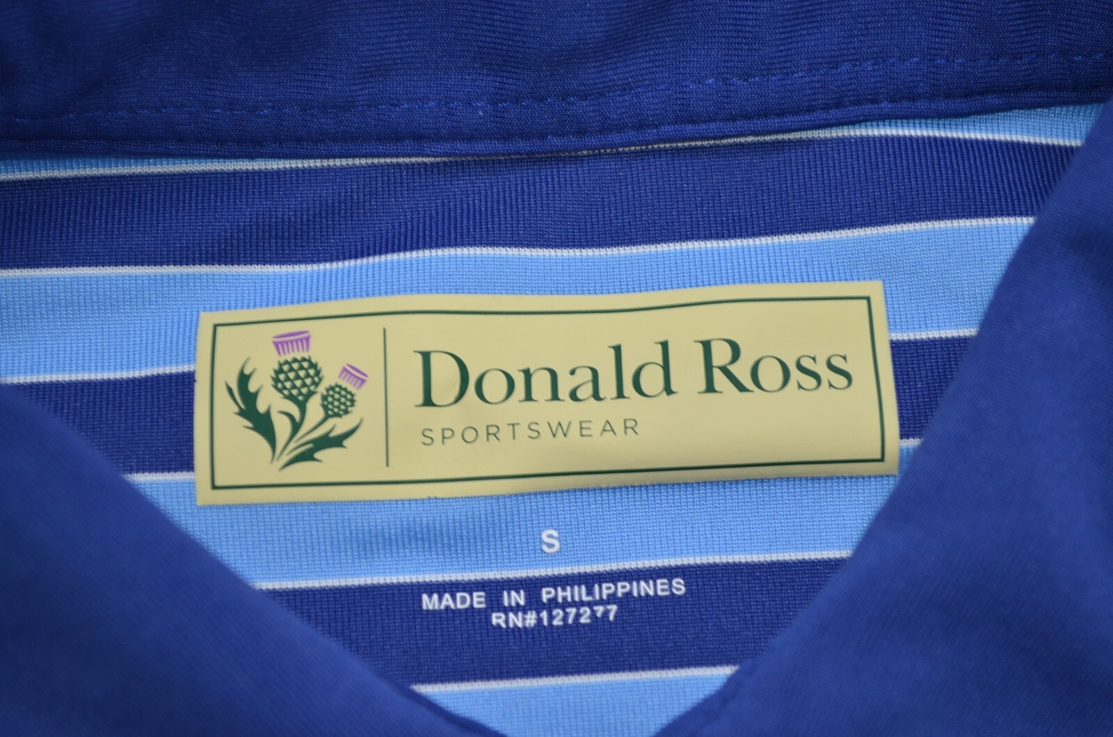 Donald Ross Polo Shirt Short Sleeve Golf Performance Blue Striped Men's S