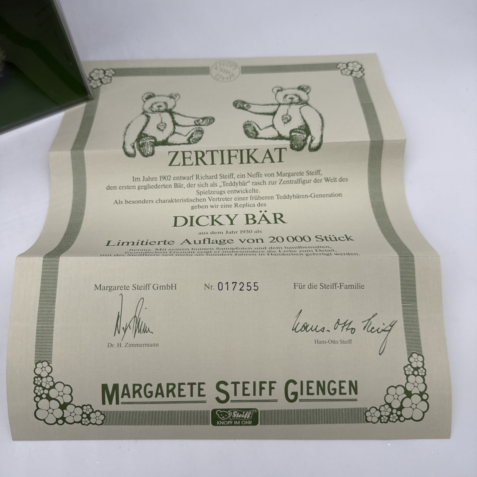 STEIFF DICKY 1930 Replica Limited Edition Mohair Teddy Bear w/ COA West Germany