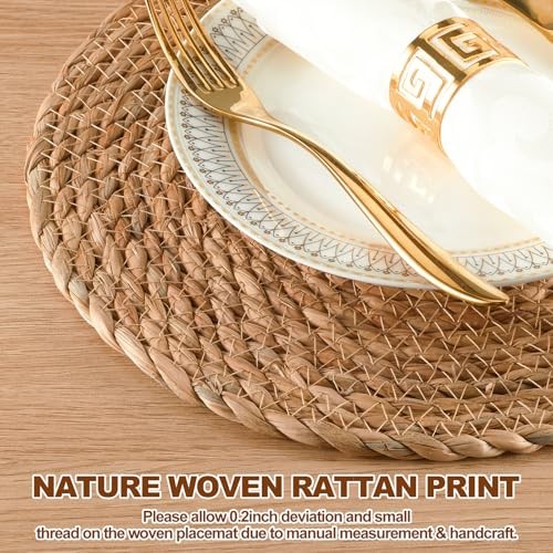 Round Woven Placemats - Boho Rattan Placemat Natural Water 13.5 inch Set of 8