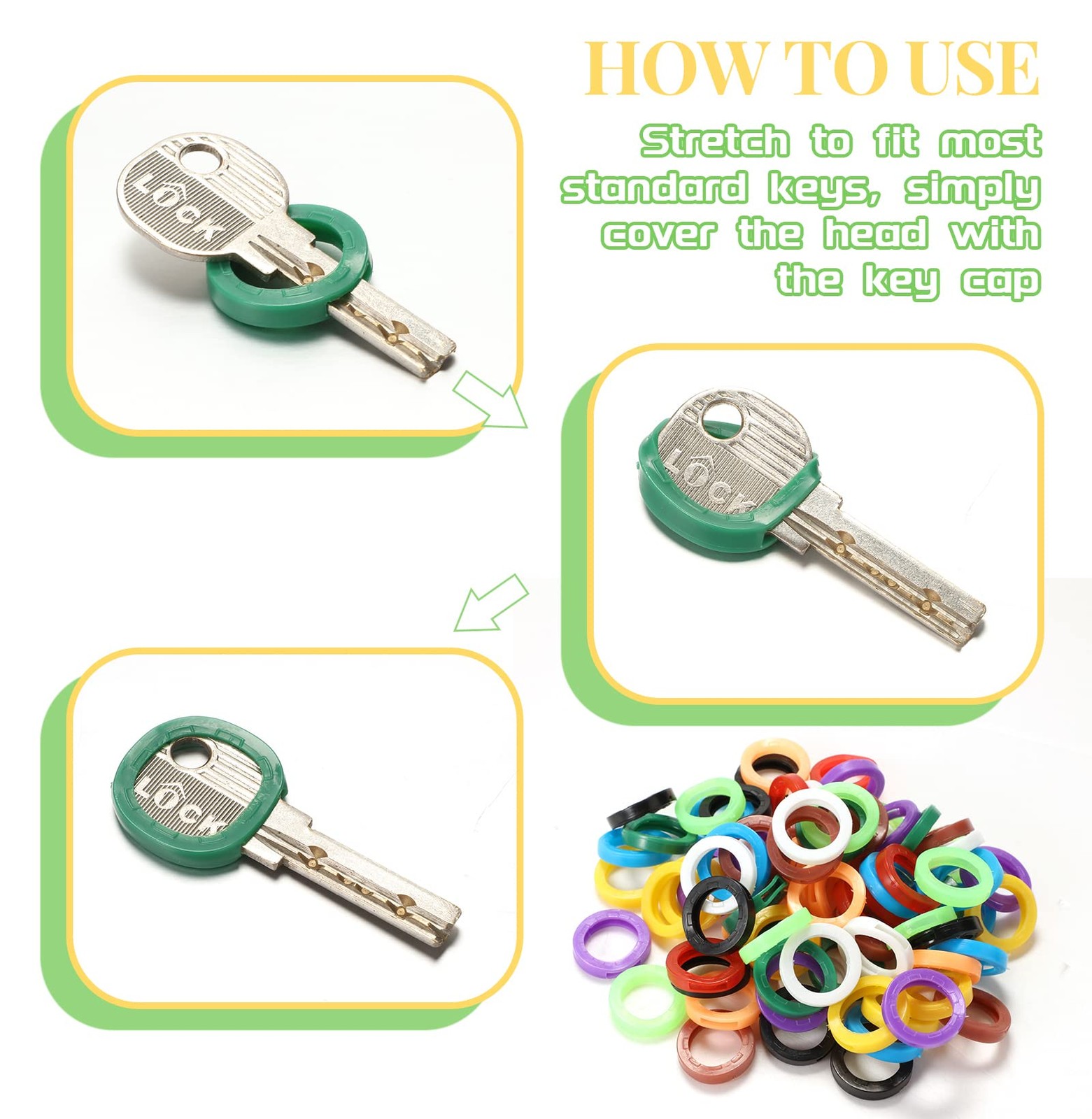 как выглядит Jetec 160 Pieces Key Caps Tags Set Plastic Identifier Coding Rings 10 Assorte... фото