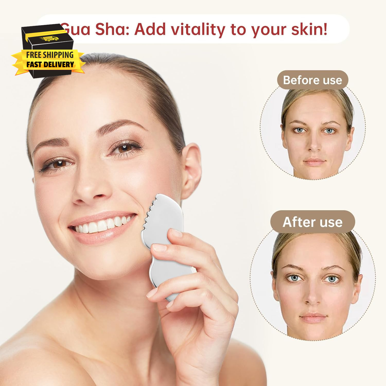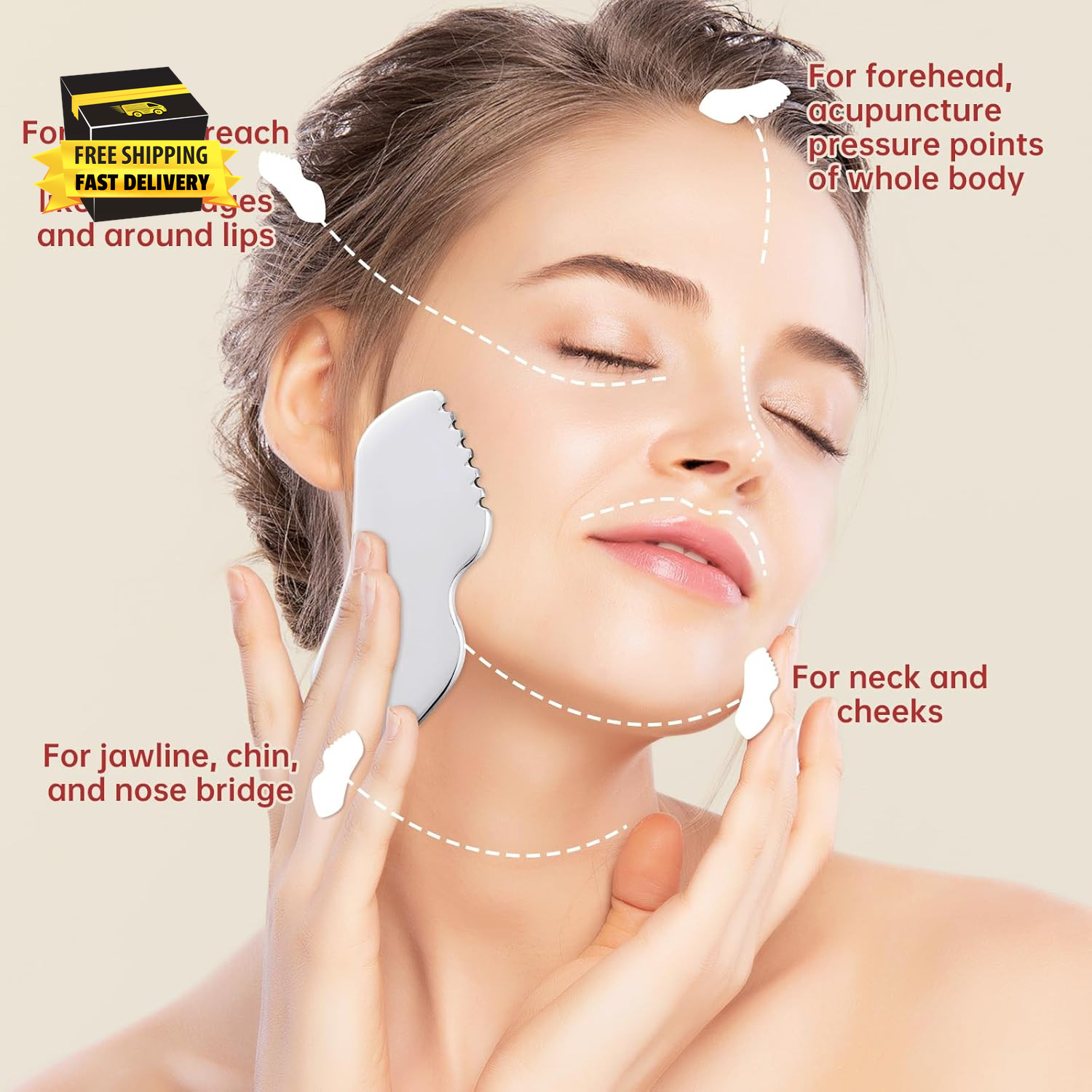 Stainless Steel Gua Sha Facial Tools, Face Comb Massager Metal Gua Sha Tool fo