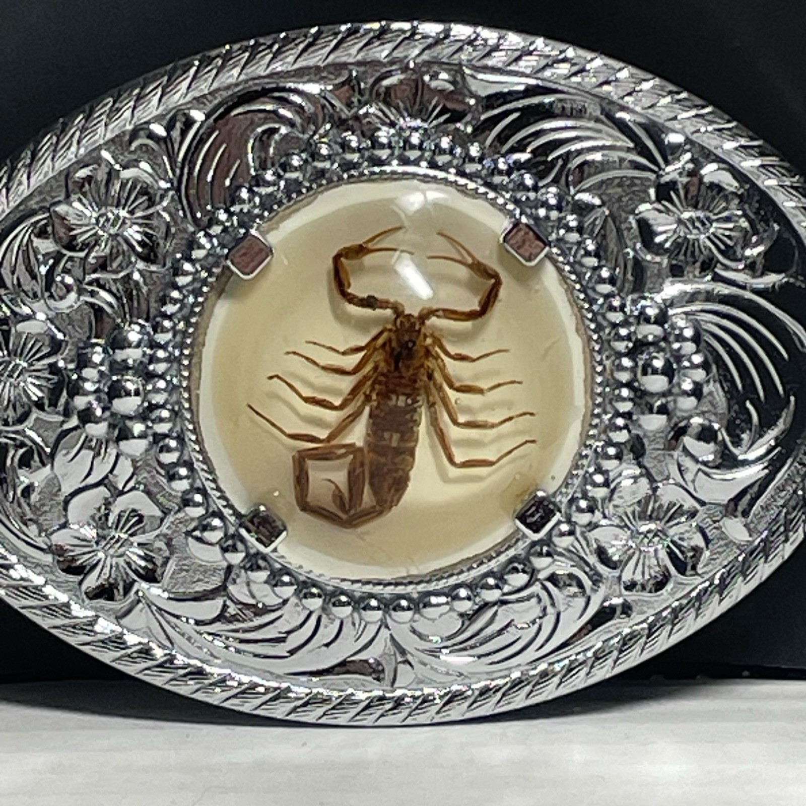 как выглядит Real Scorpion Belt Buckle In Oval Resin Silver Tone Glows Under Black Light фото