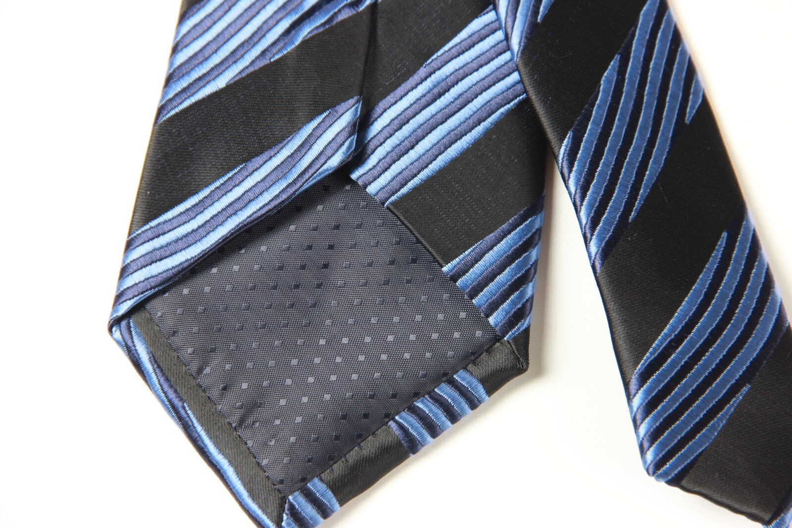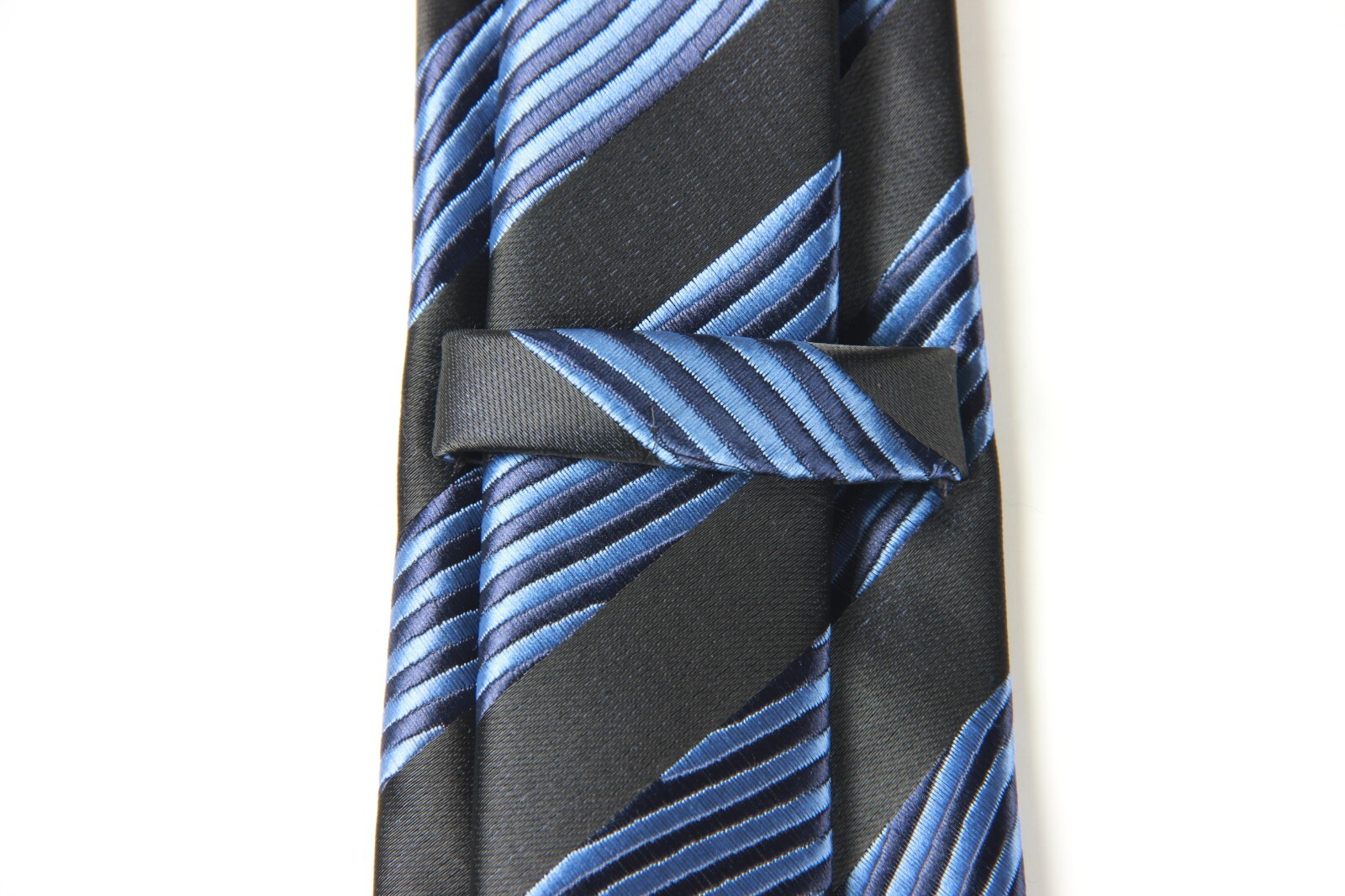 как выглядит New Classic Striped Blue Black JACQUARD WOVEN 100 Silk Men