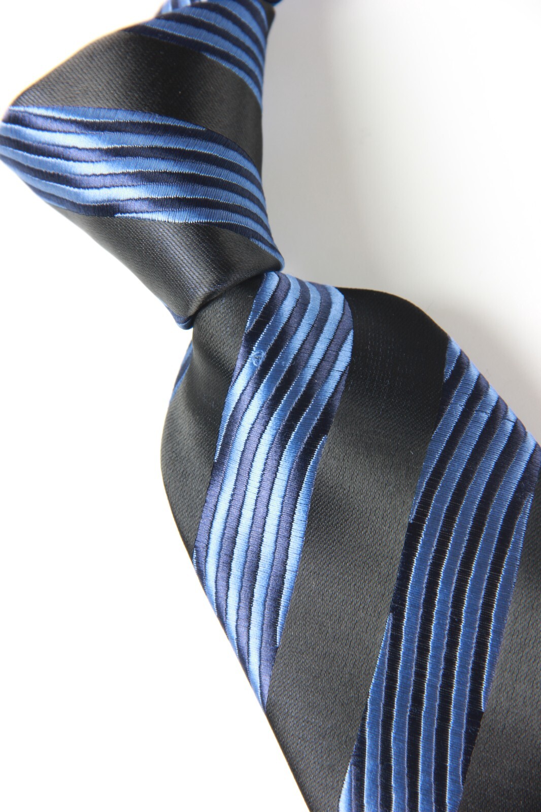 New Classic Striped Blue Black JACQUARD WOVEN 100 Silk Men's Necktie Tie