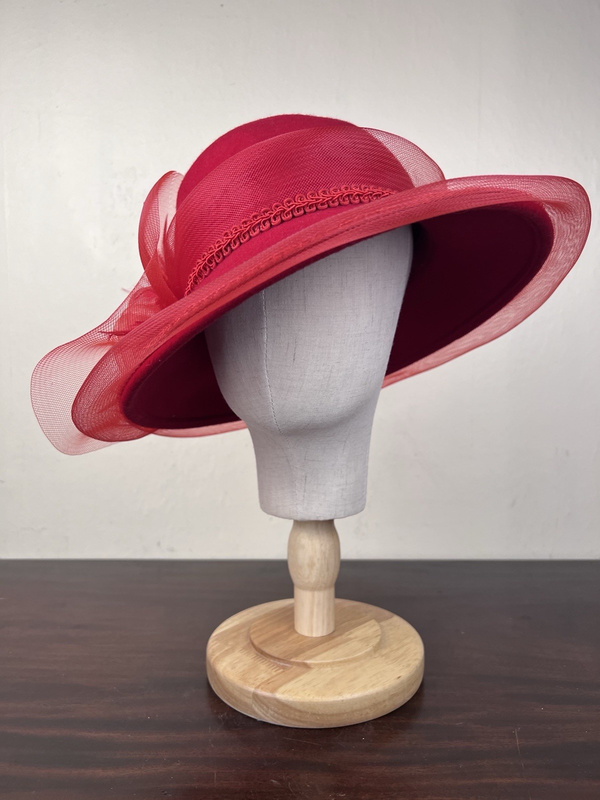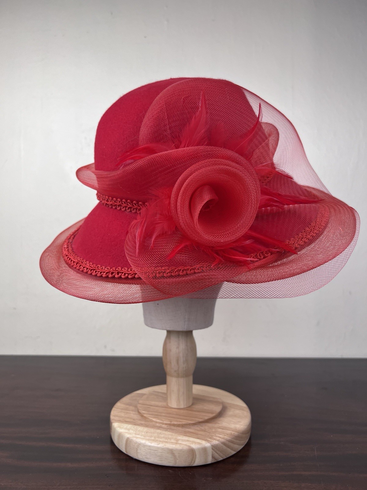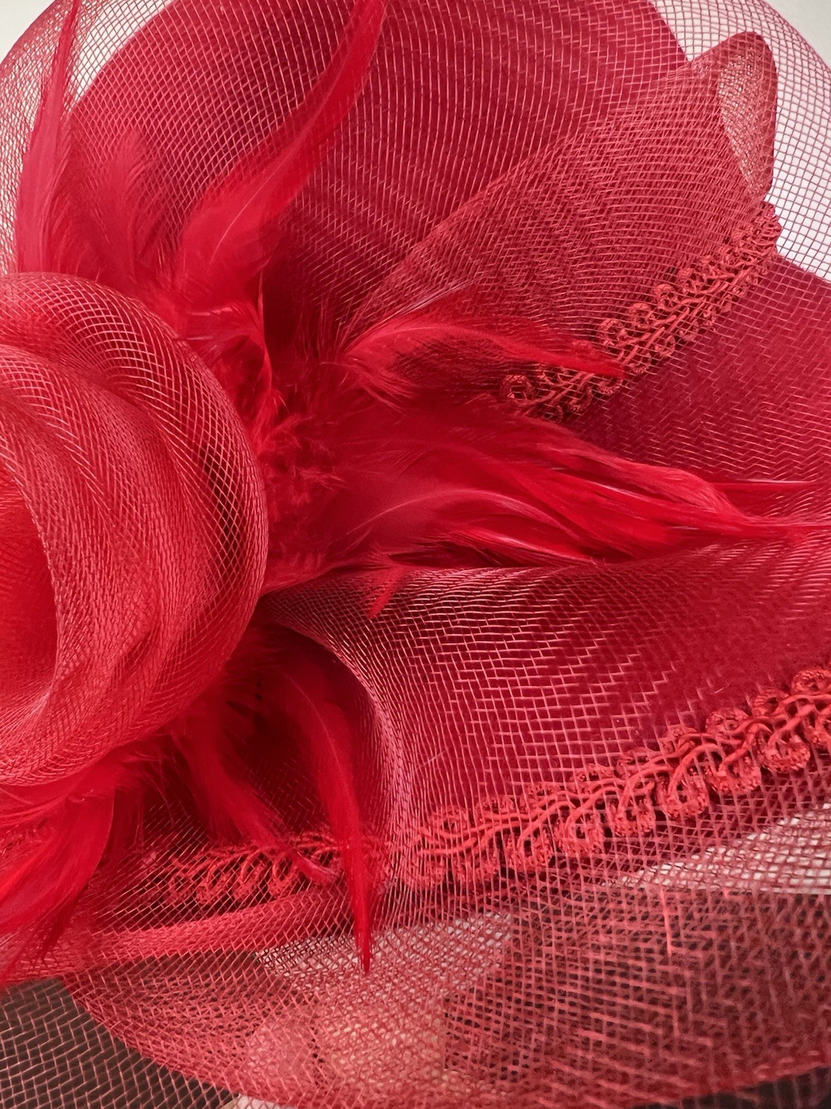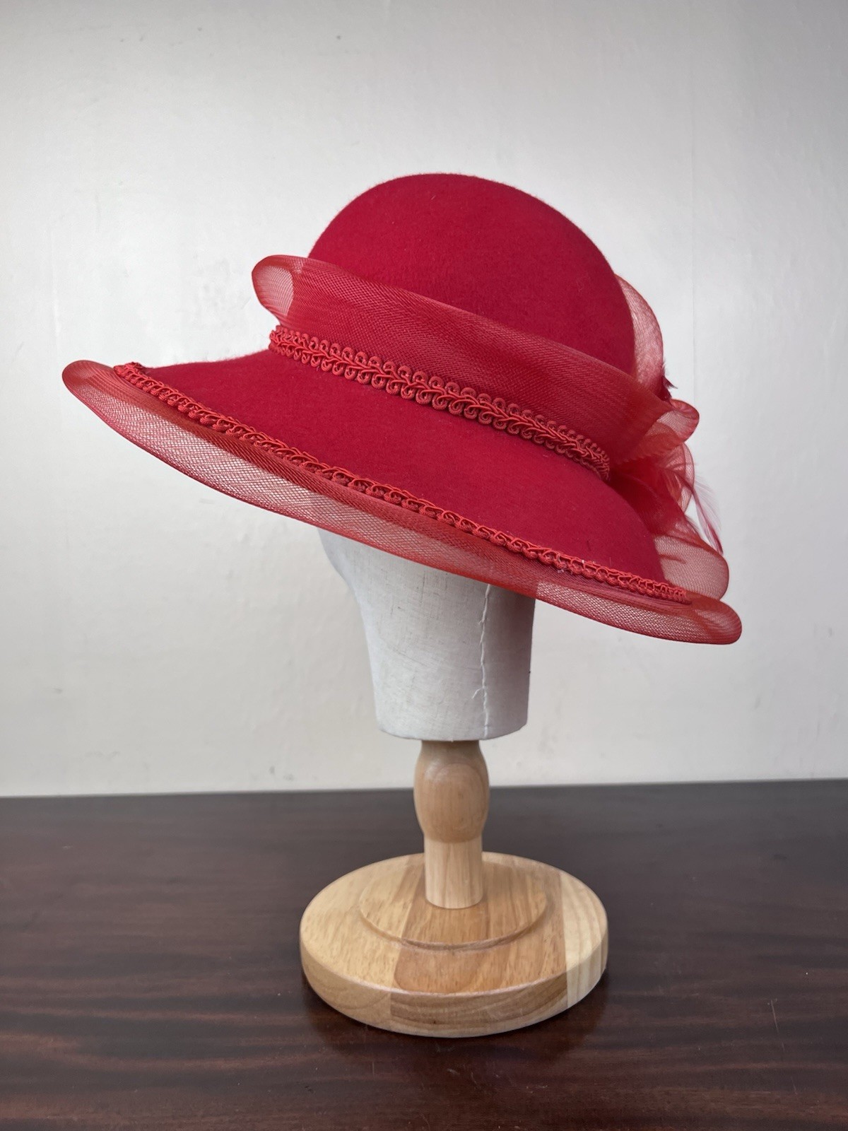 VTG Women's Red Special Occasion Hat Feather Flower Accent Church Derby Party