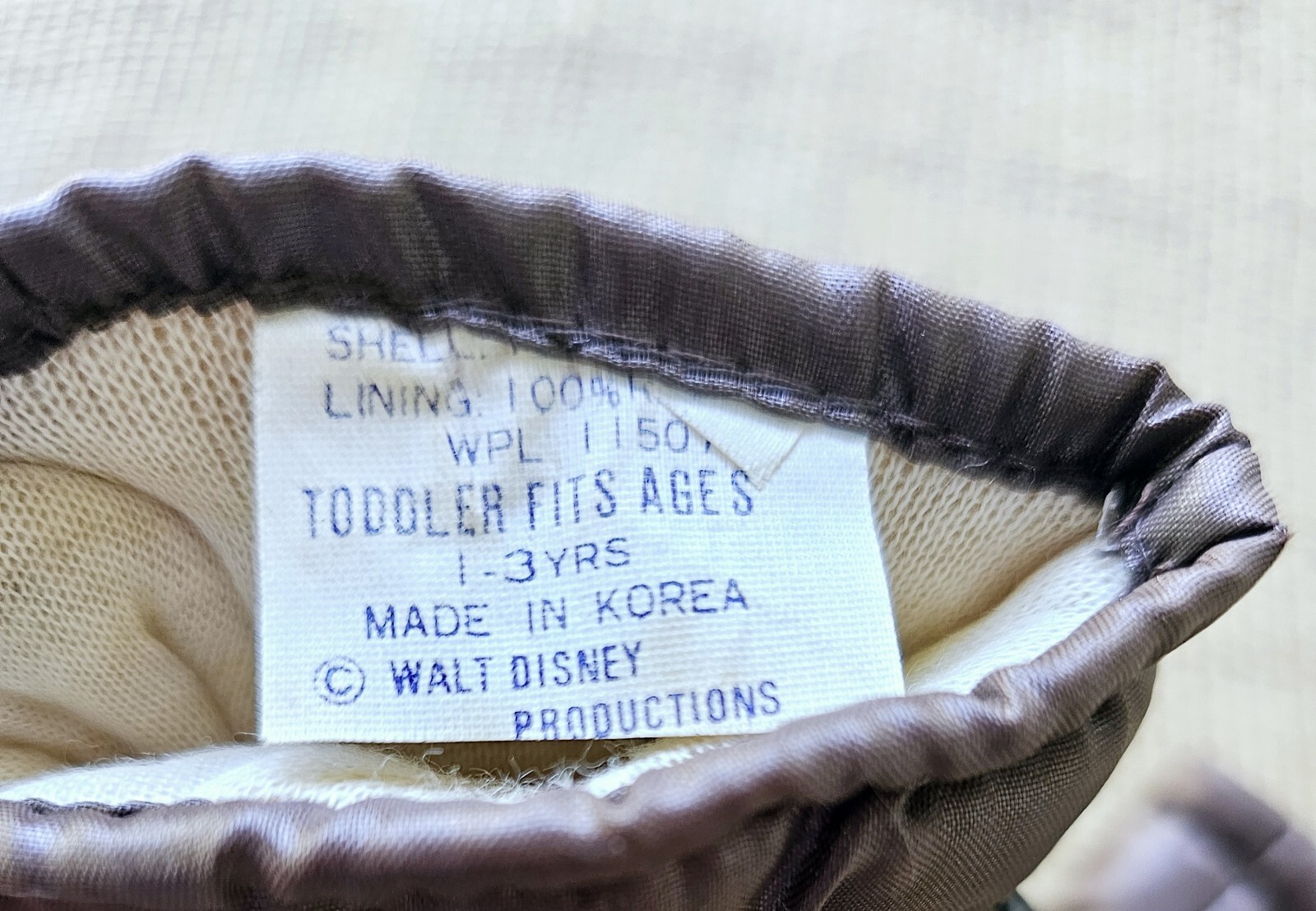 Vintage 1970s Walt Disney Mickey Mouse Kids Brown Nylon Mittens Ages 1 To 3