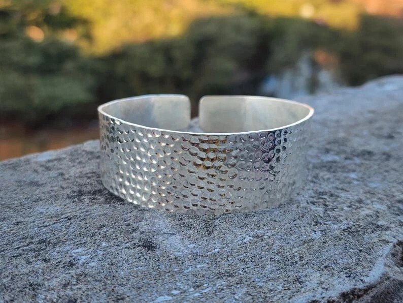 Solid 925 Sterling Silver Bangles, Hammered Bangles Adjustable Jewelry Bangles