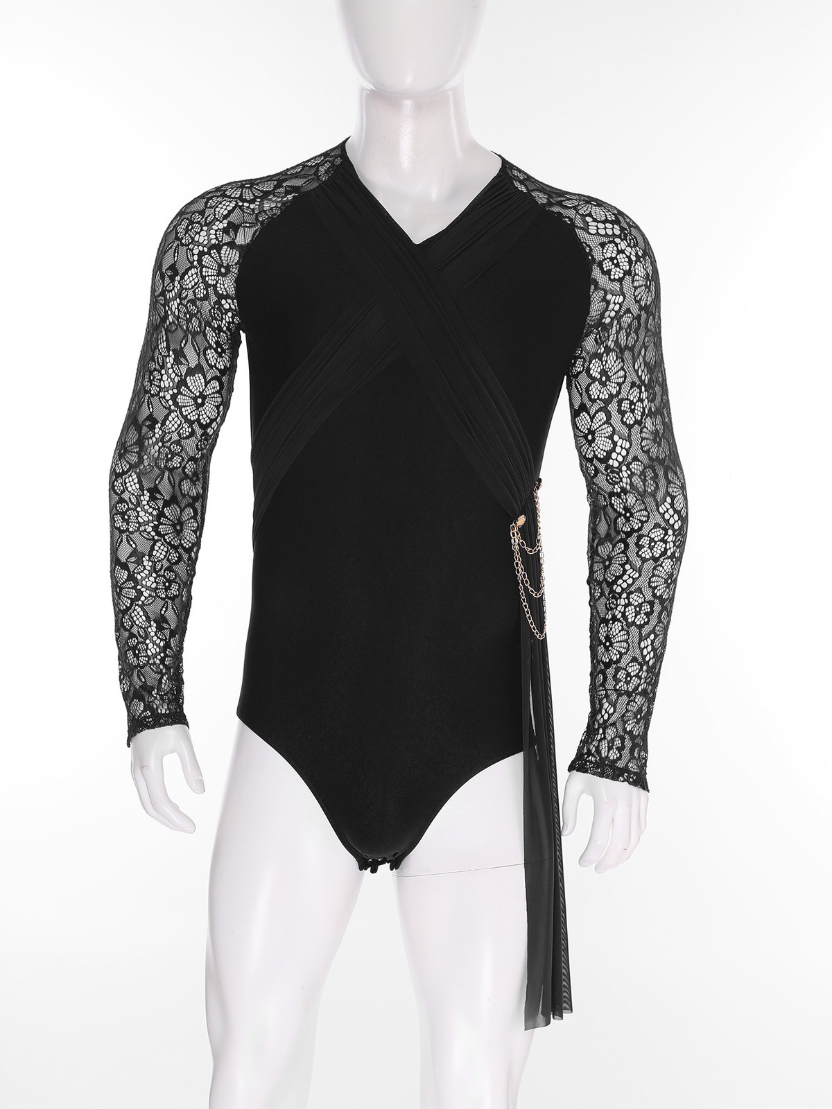 Mens Bodysuit One-piece Jumpsuit Layer Leotard Long Sleeve Latin Catsuit Dance