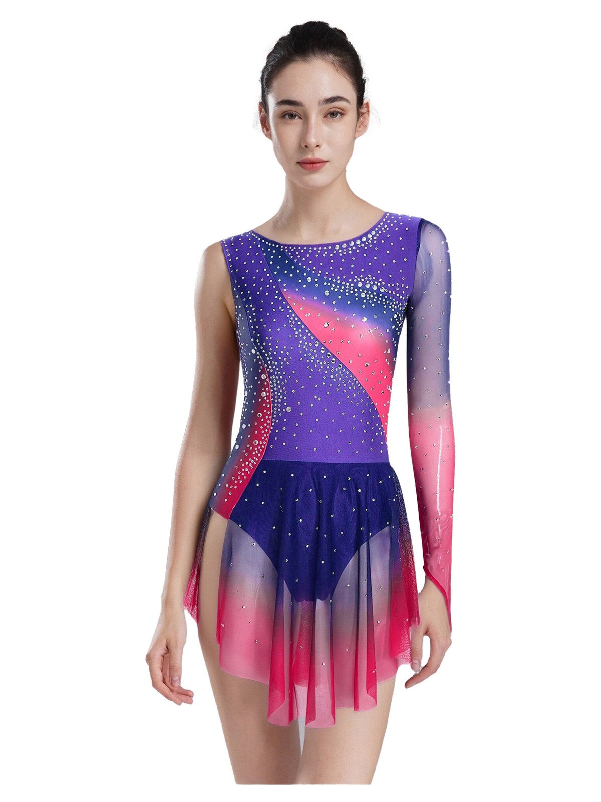 Womens Leotard Lyrical Dress Sleeveless Bodysuit Rhinestones Dancewear Modern