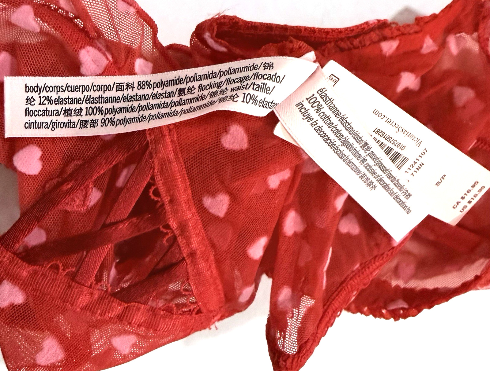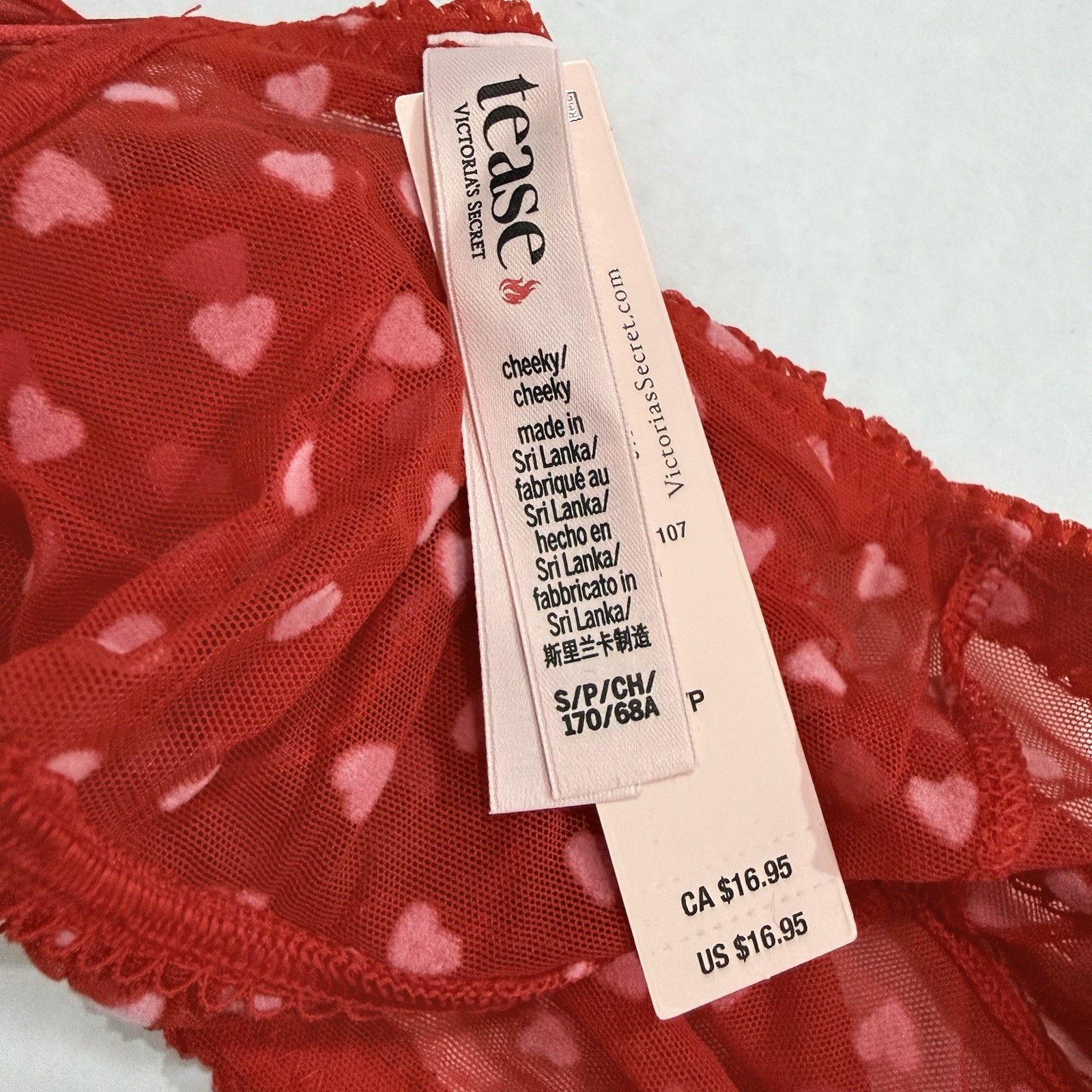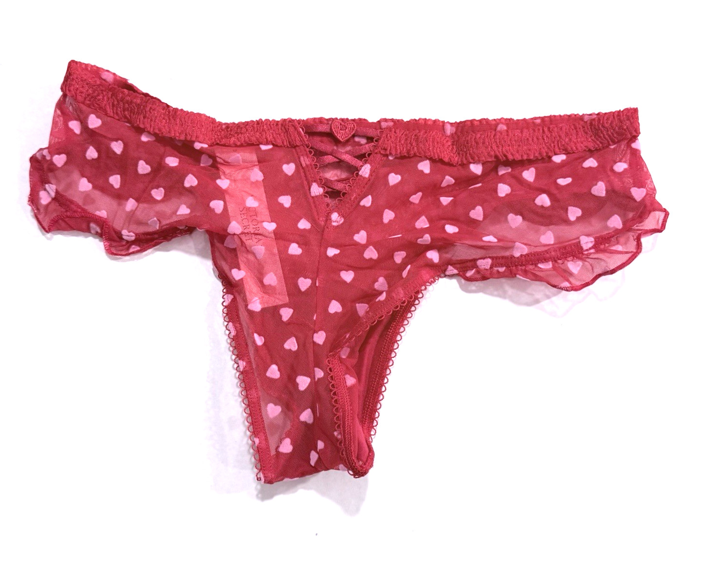 Victoria's Secret Tease Cheeky Panty Womens S Pink Hearts Back Lace Red Ruffle