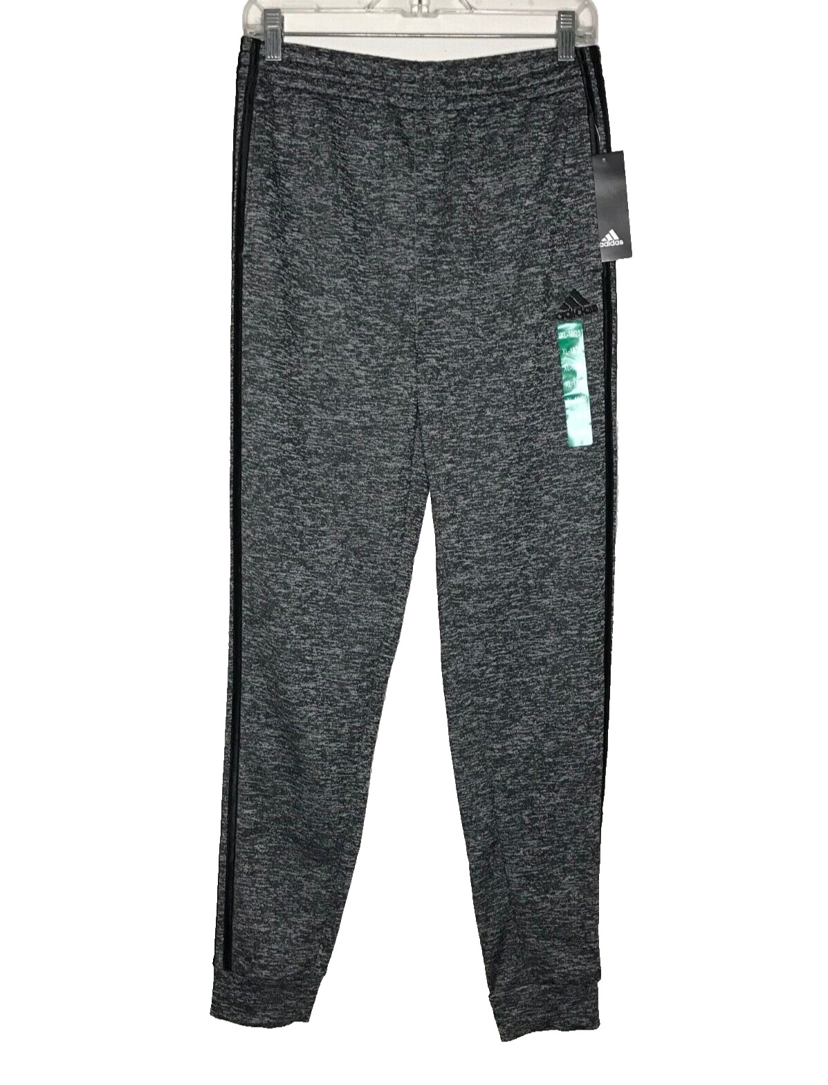 Adidas Jogger Pants Boys Youth XL 18/20 Heather Gray Black 3 Stripe