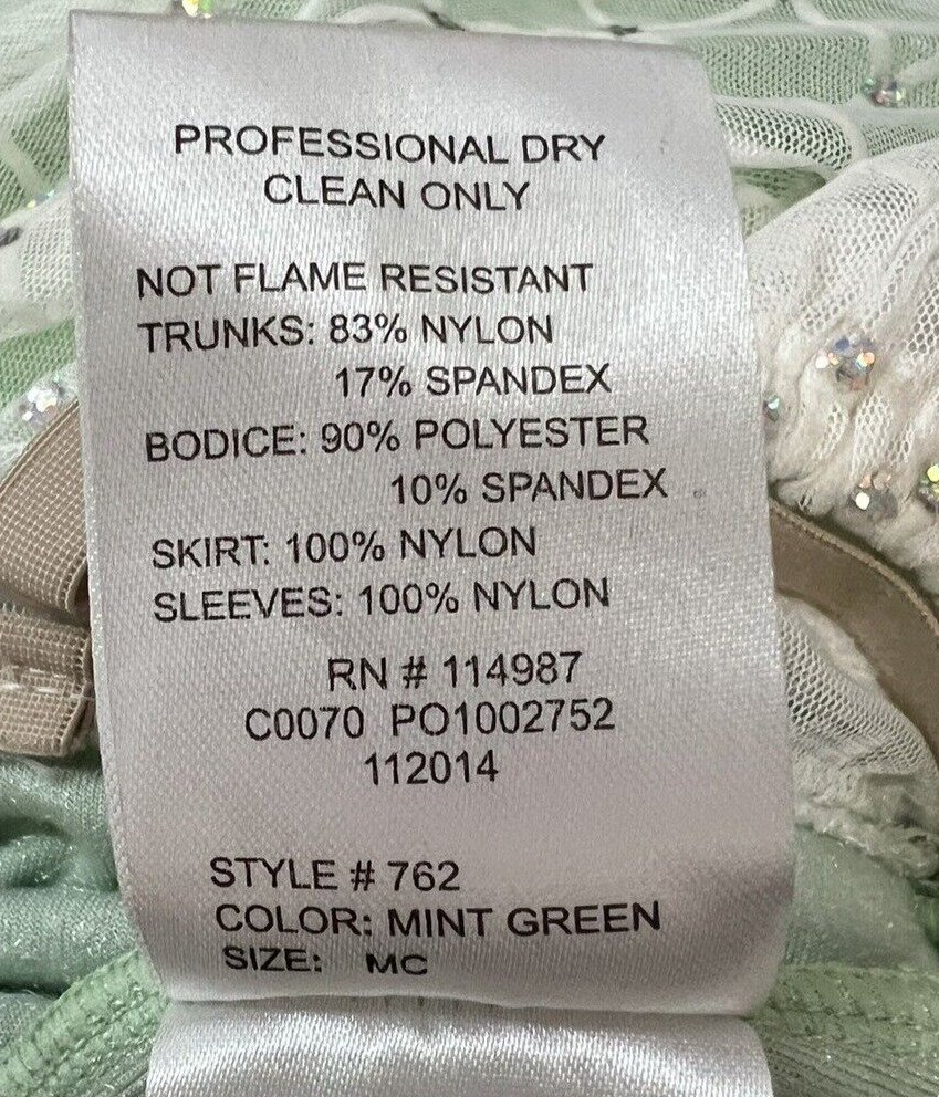 Revolution Dancewear Mint Green Style 762 Dance Skating Costume Size Child M