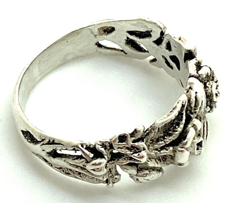 Vintage Sterling Silver / 925 Flowers Band Ring Size 6