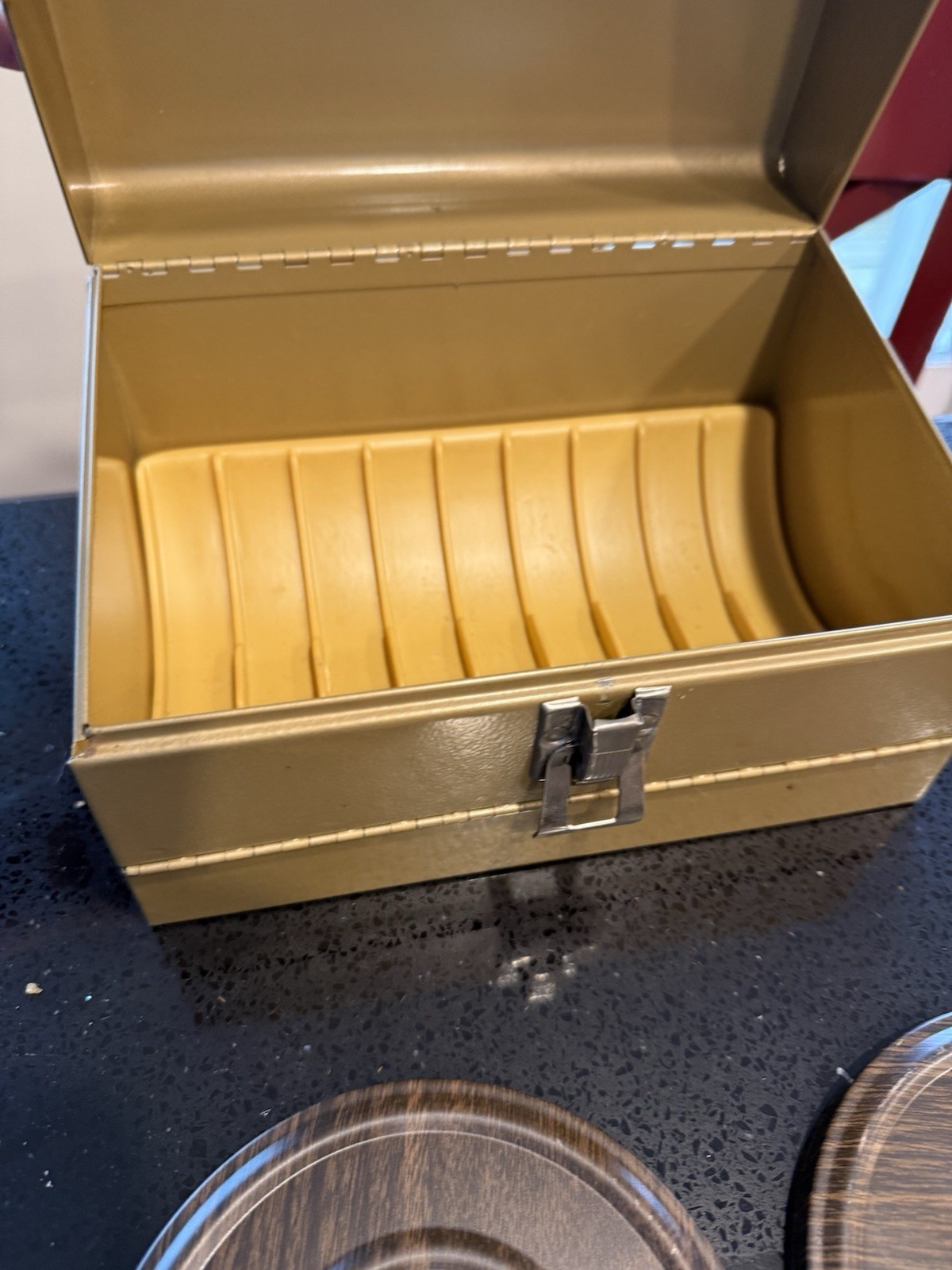 как выглядит 8 MM Metal,Plastic 5 Film Reels Carry Case Box Canister VTG Logan De Luxe Super фото