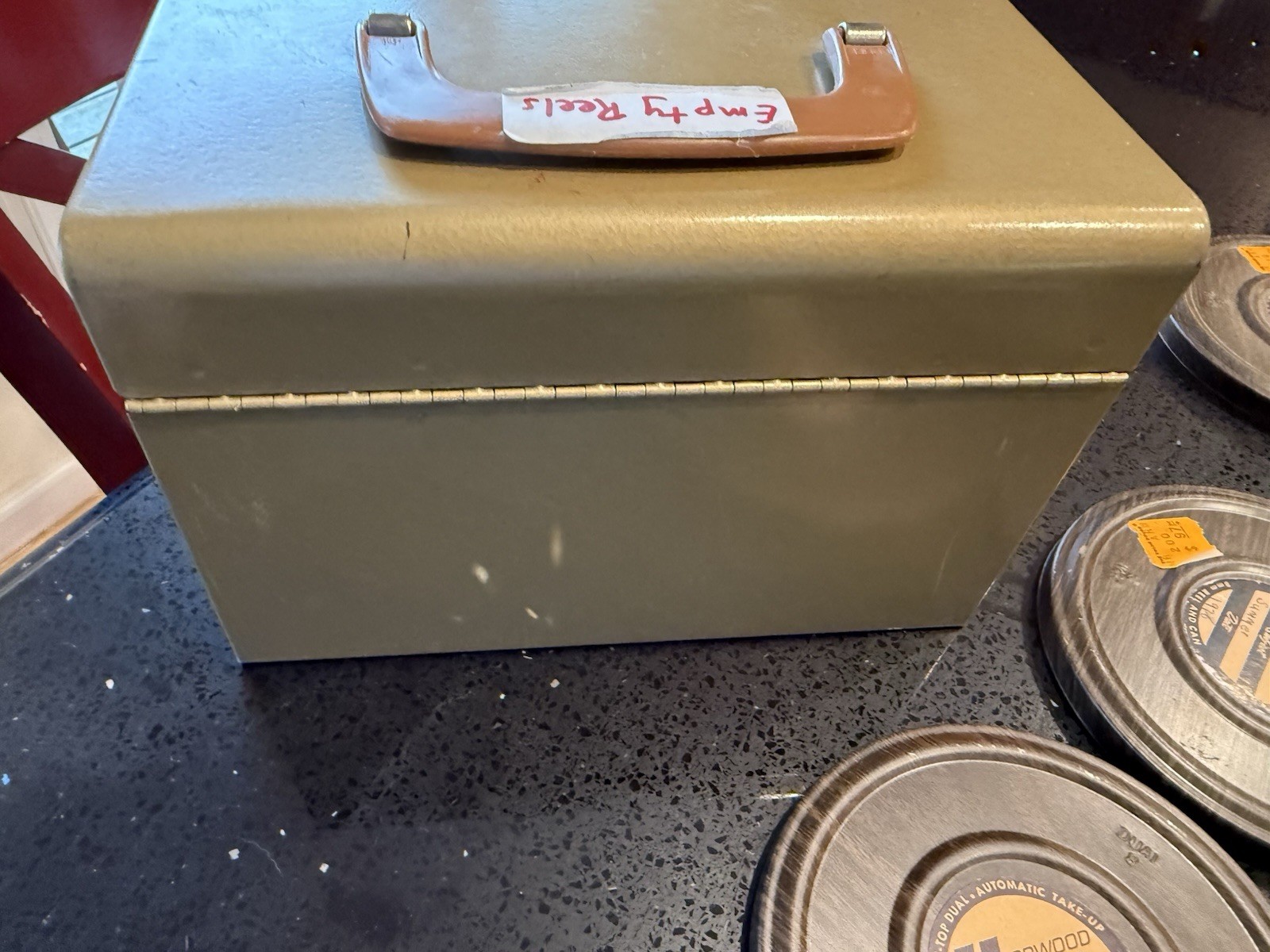 8 MM Metal,Plastic 5 Film Reels Carry Case Box Canister VTG Logan De Luxe Super