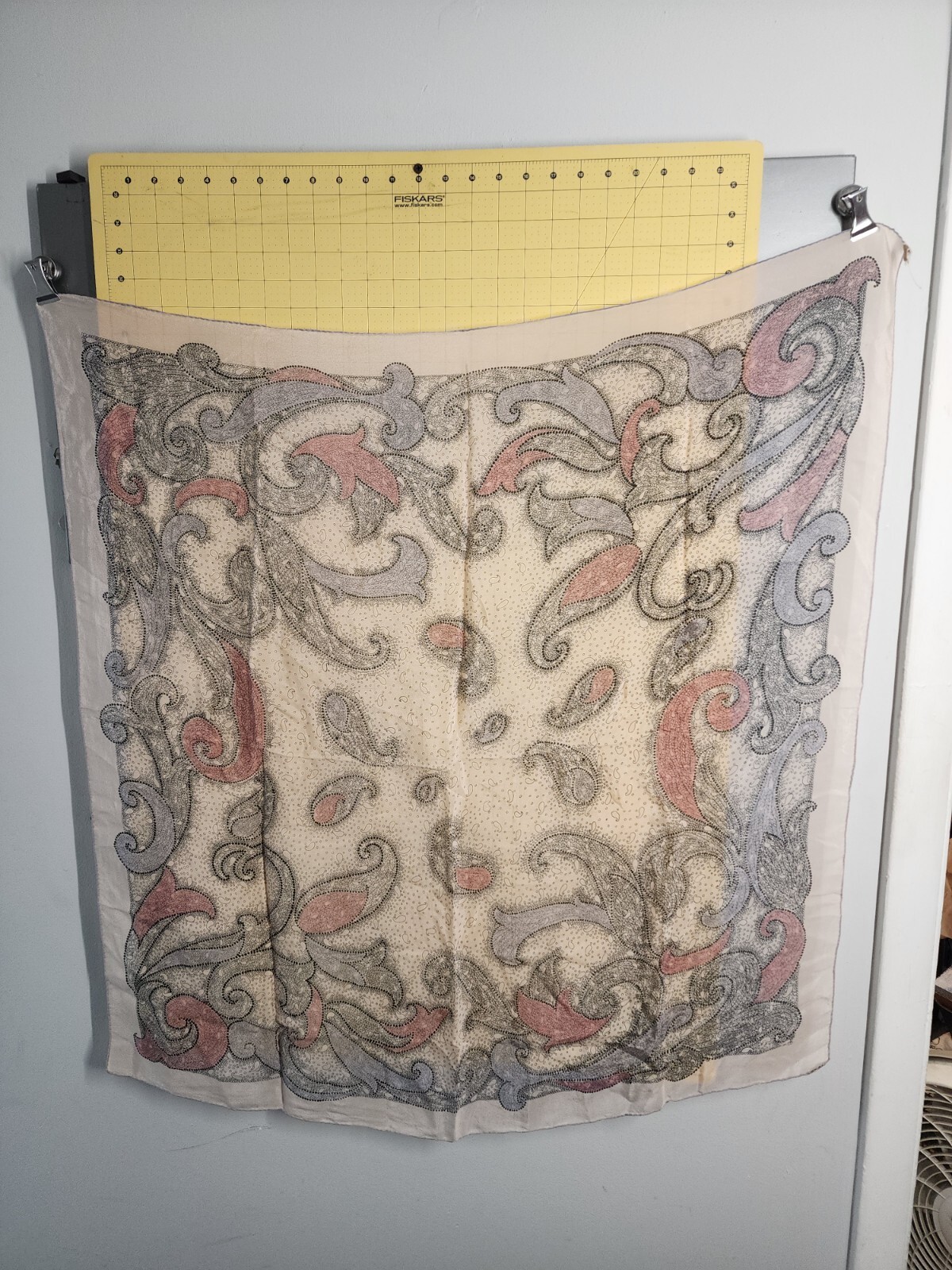 как выглядит Paisley Scarf Pure Silk Top Hit Fashion Baar Beards Japan Black Pink Gray Vtg фото