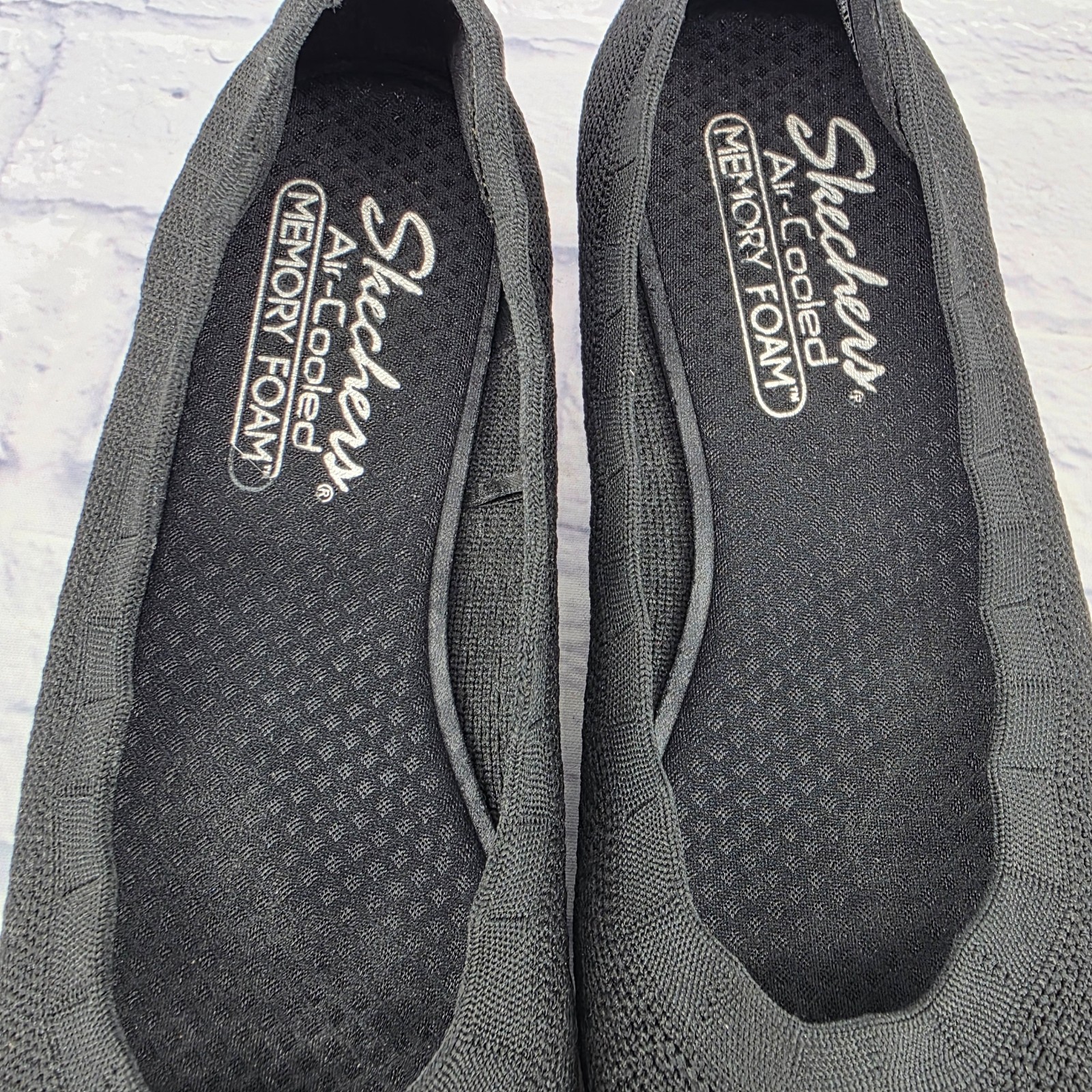 как выглядит Skechers Cleo Sport What a Flex Women Sz 8 Black Knit Fabric Ballet Flats 158343 фото