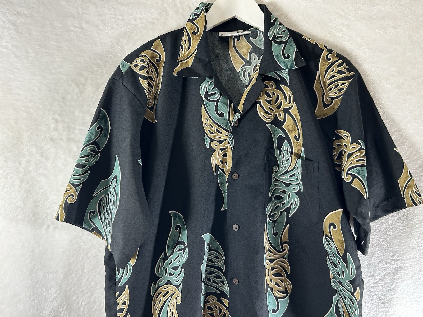 как выглядит makani hawaiian shirt Medium Vintage Polyester Black Camp Casual Biz Free Ship фото
