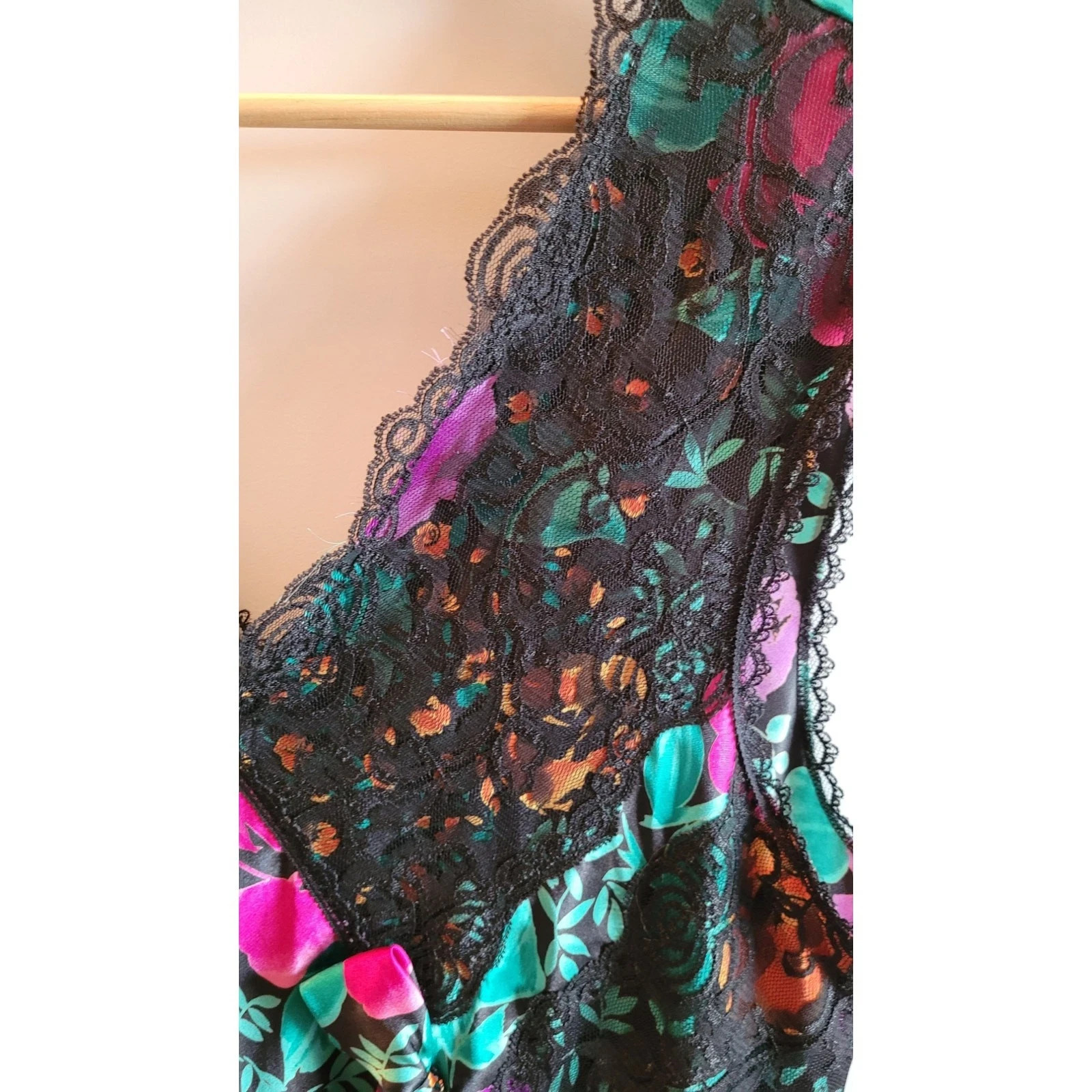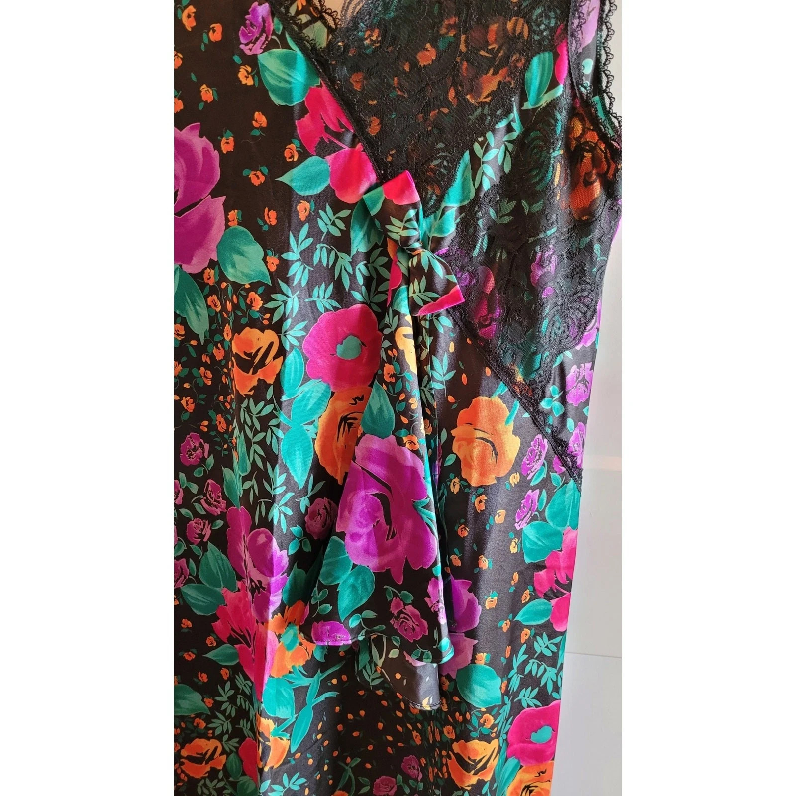 как выглядит Vintage Scaasi Floral Satin Nightgown Lace and Sash Lingerie Size L фото