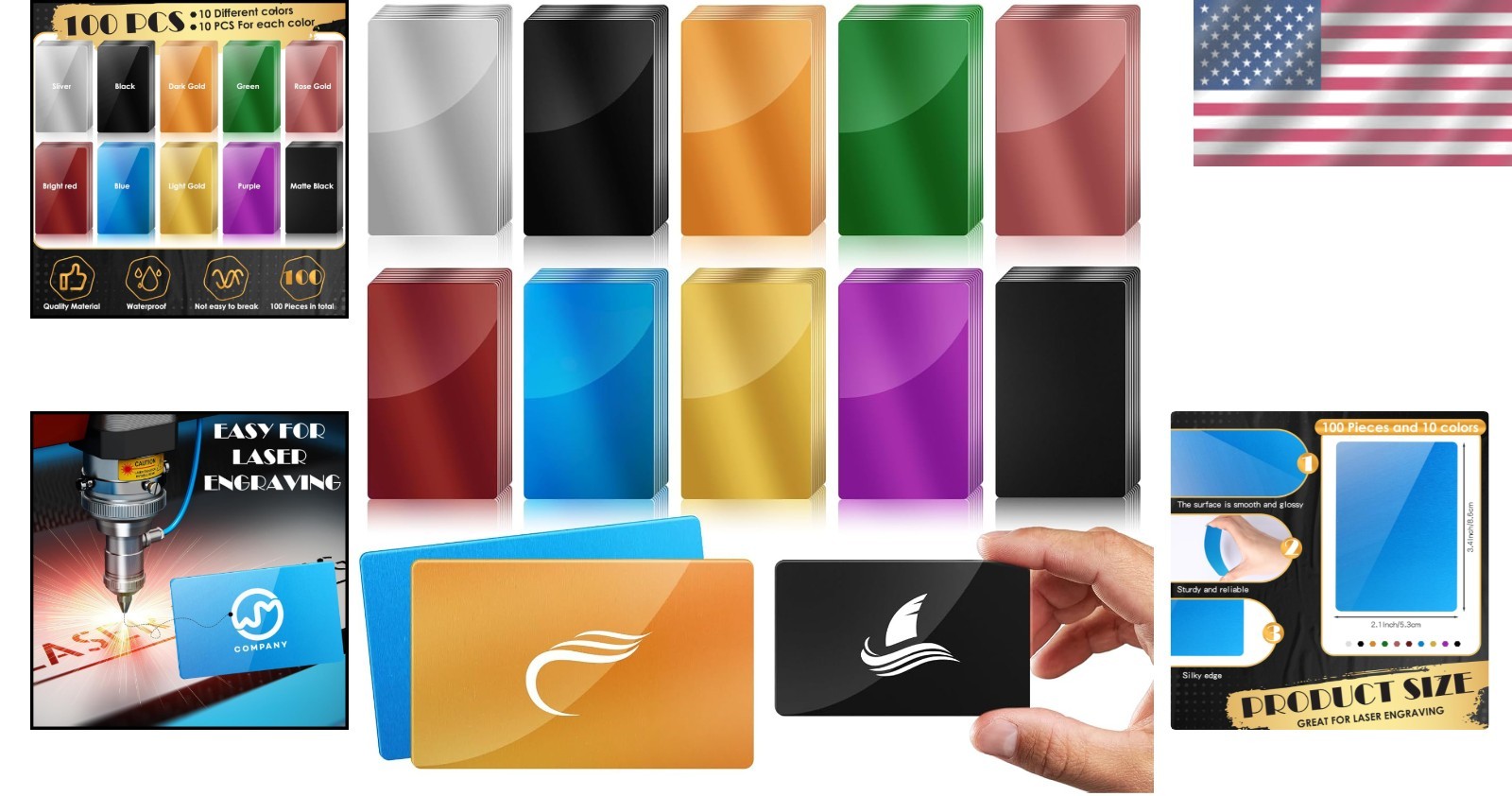 100-Piece Colorful Aluminum Metal Business Card Blanks for DIY Engraving