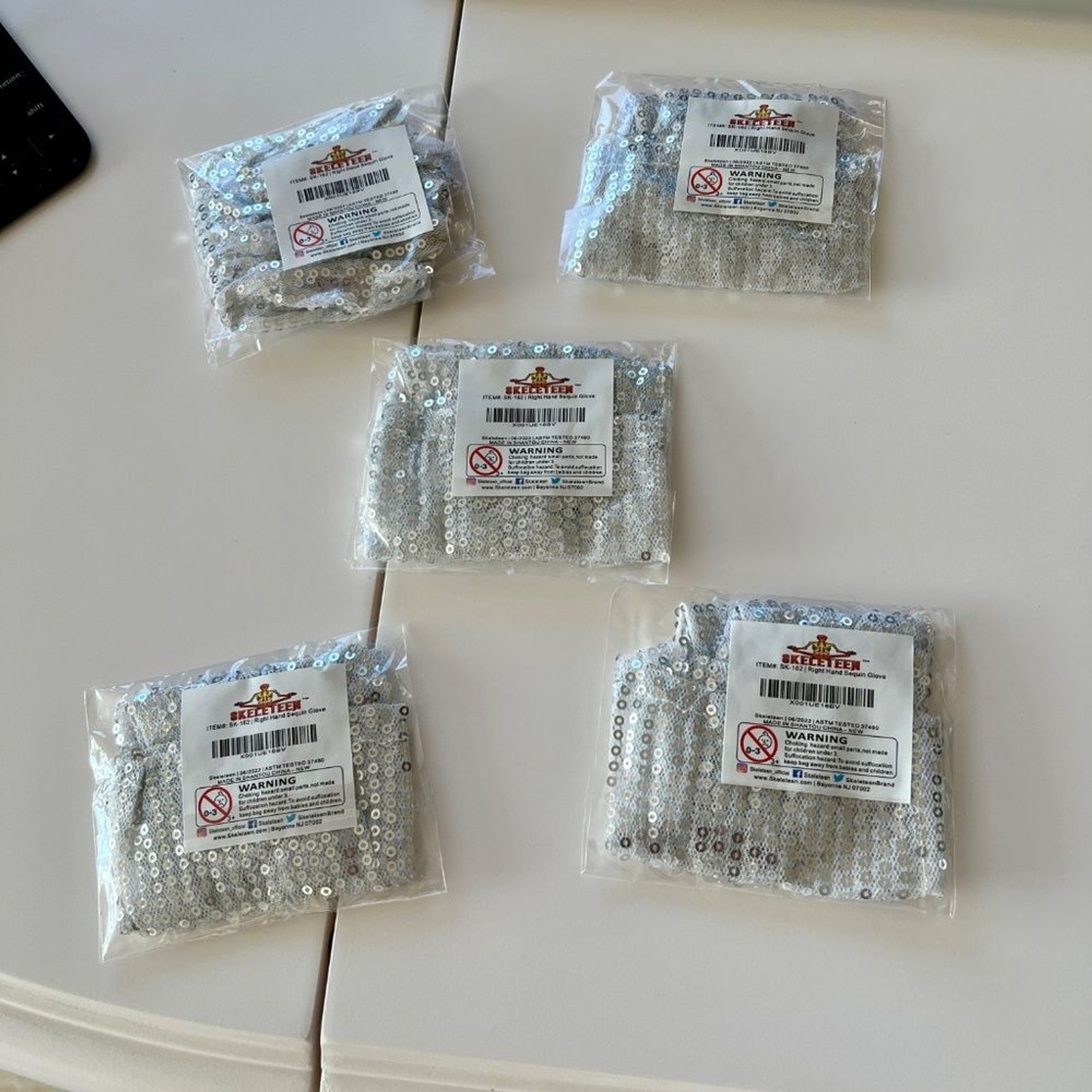 как выглядит 5 SKELETEEN MICHAEL JACKSON RIGHT HAND SEQUINS GLOVE LOT OF 5 NEW WHITE SILVER фото