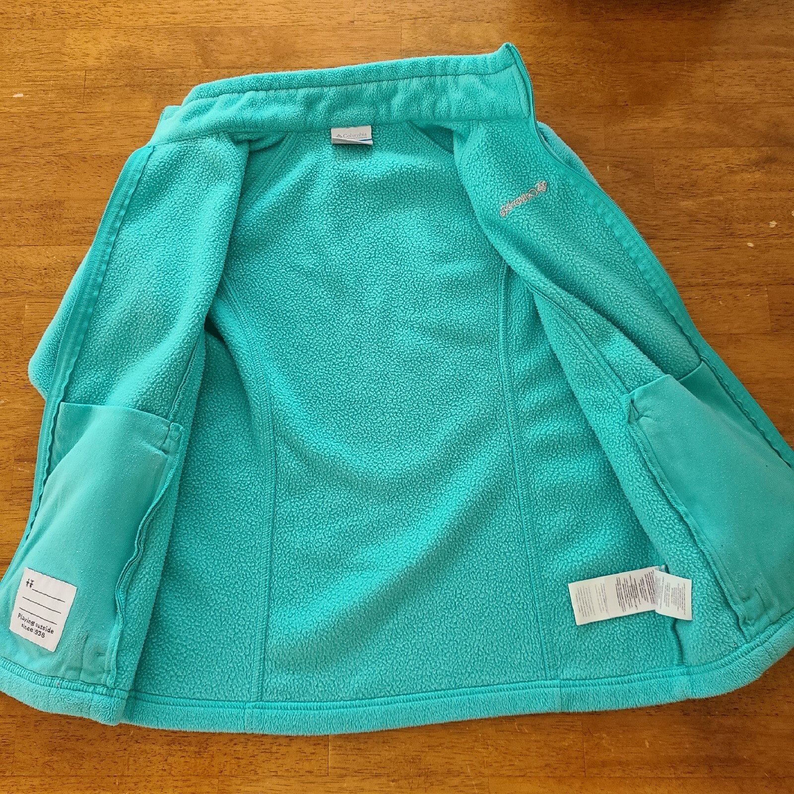 как выглядит Columbia Jacket Youth Large 14/16 Green Sweater Full Zip Fleece Girls Mock Neck фото