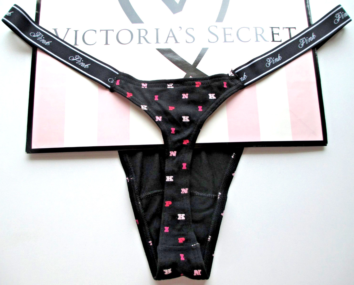 VICTORIA'S SECRET PINK Cotton High Leg Micro Thong Panty VS Black Logo S M L XL