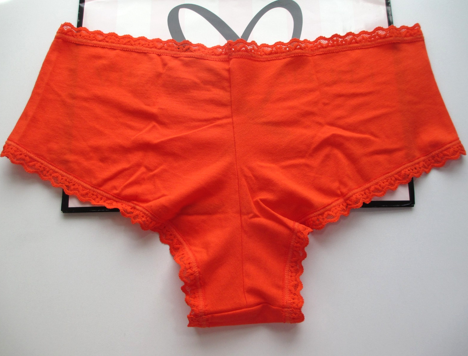 как выглядит VICTORIAS SECRET Cotton Cheeky Panty VS Lace Trim S M L XL Wild Orange NWT фото