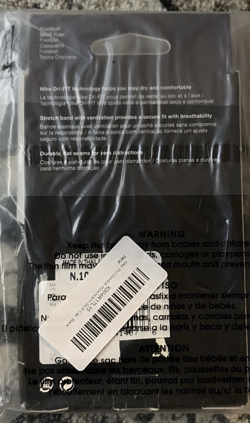 NIB Nike Dri-Fit Skull Cap Football Black Made In Thailand Free Shipping