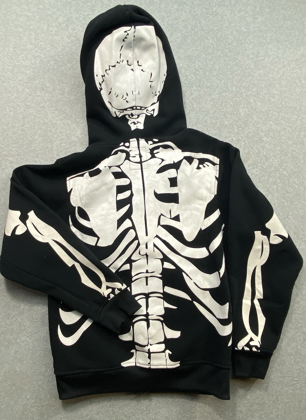 Mecca Black Full Zip Hoodie Boys Sz 14/16 Skeleton Comfort Pockets Distressed