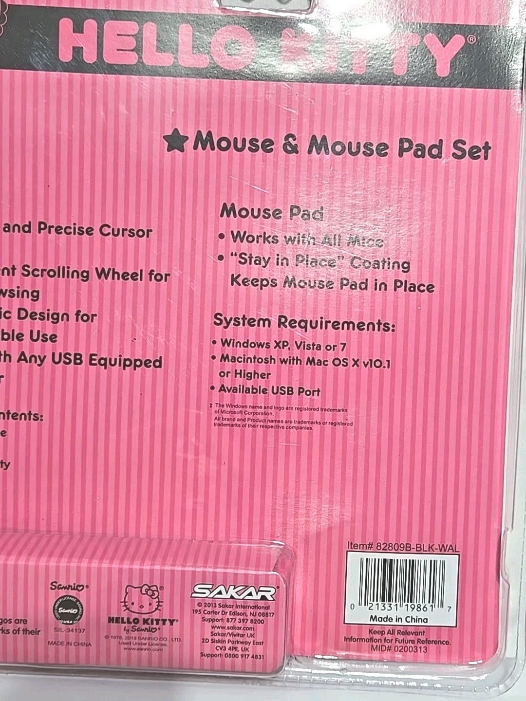 Hello Kitty Optical Mouse WIRED Black 2013 Mouse Pad Sakar- New Factory Sealed