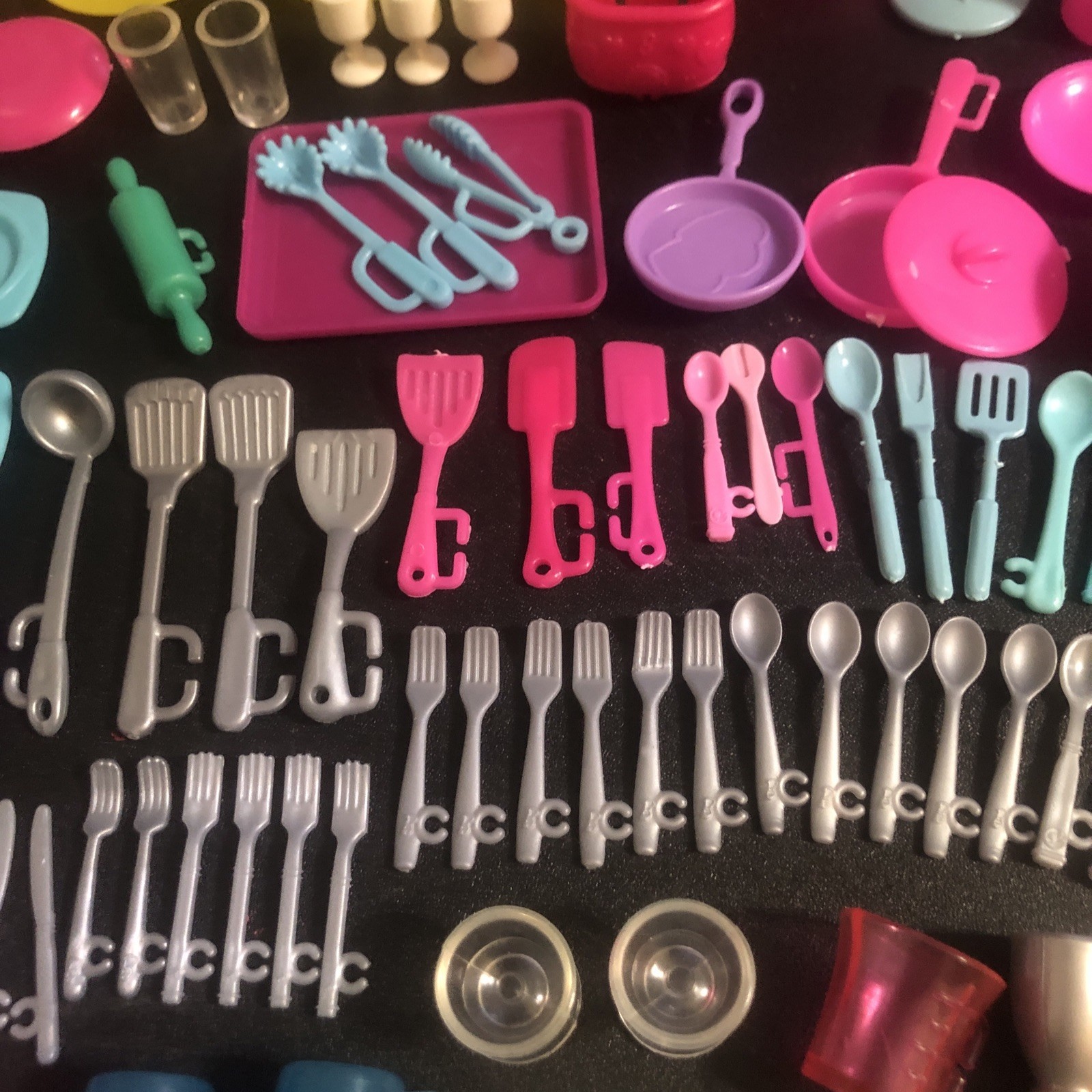 Huge Lot Barbie Doll Kitchen Accessories 115 Pcs Plates Food Cups Cutlery Pans