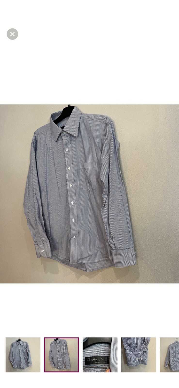 как выглядит Christian Dior blue and white stripped button down 16 1/2 фото
