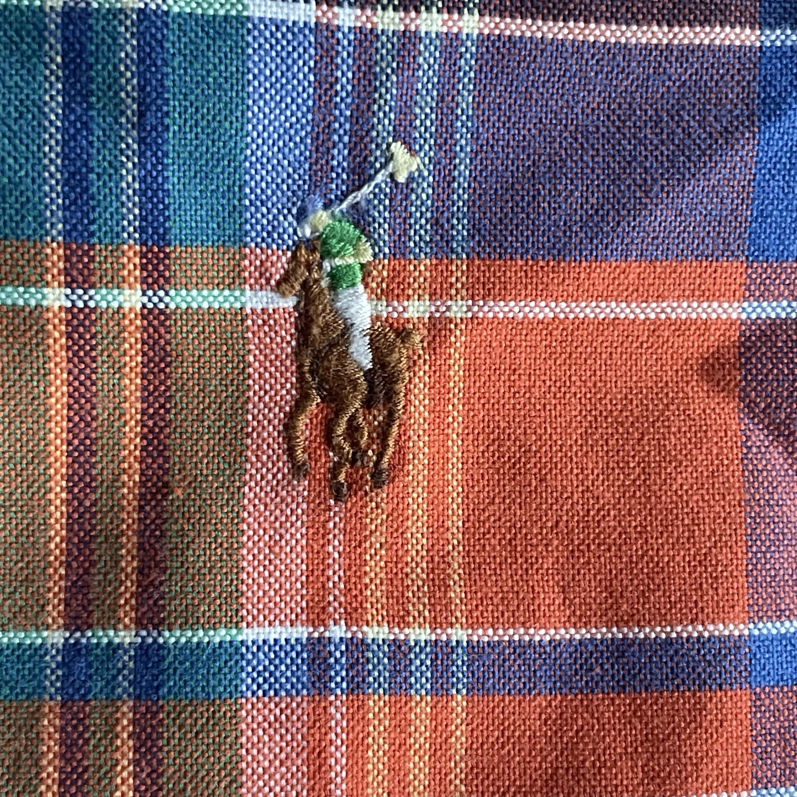 Ralph Lauren Mens XL Plaid Long Sleeve Button Down Dress Shirt Orange Blue