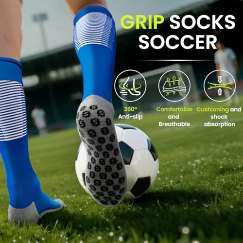 3 Pairs Grip Socks Soccer for Youth Kids,Anti Slip Medium White black blue